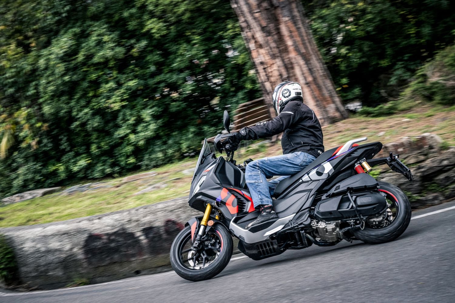Práve v takomto prostredí sme dostali do rúk nový skúter Aprilia SR GT 400. Trasa viedla mestskými uličkami, ktoré miestami pôsobili skôr ako chodníky než cesty, a následne sa otvorila do kľukatých horských úsekov. A aby toho nebolo málo, typické talianske počasie sa rozhodlo pridať aj poriadnu dávku dažďa. Práve v takých chvíľach sa však často ukáže skutočný charakter stroja.
