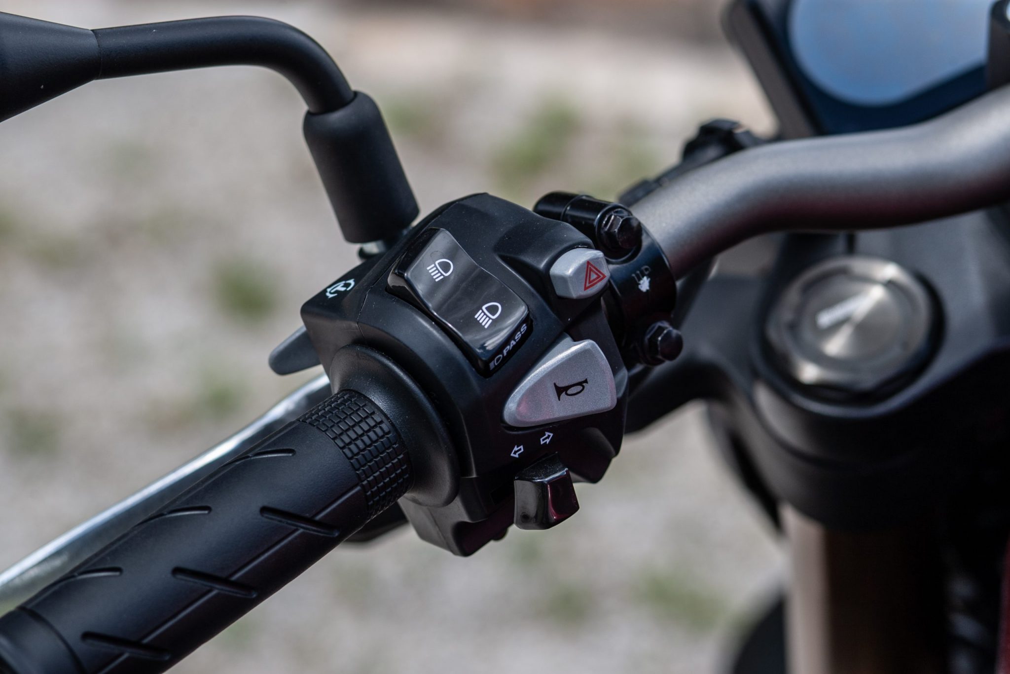 Ovládacie prvky na riadidlách sú len tie najnutnejšie. Na pravej ruke nájdete len tlačidlo od štartéra a zapínanie elektriky. Na ľavej máte smerové svetla, klaksón, výstražné svetlá, prepínač diaľkových svetiel a tlačidlo na nastavenie trakčnej kontroly.