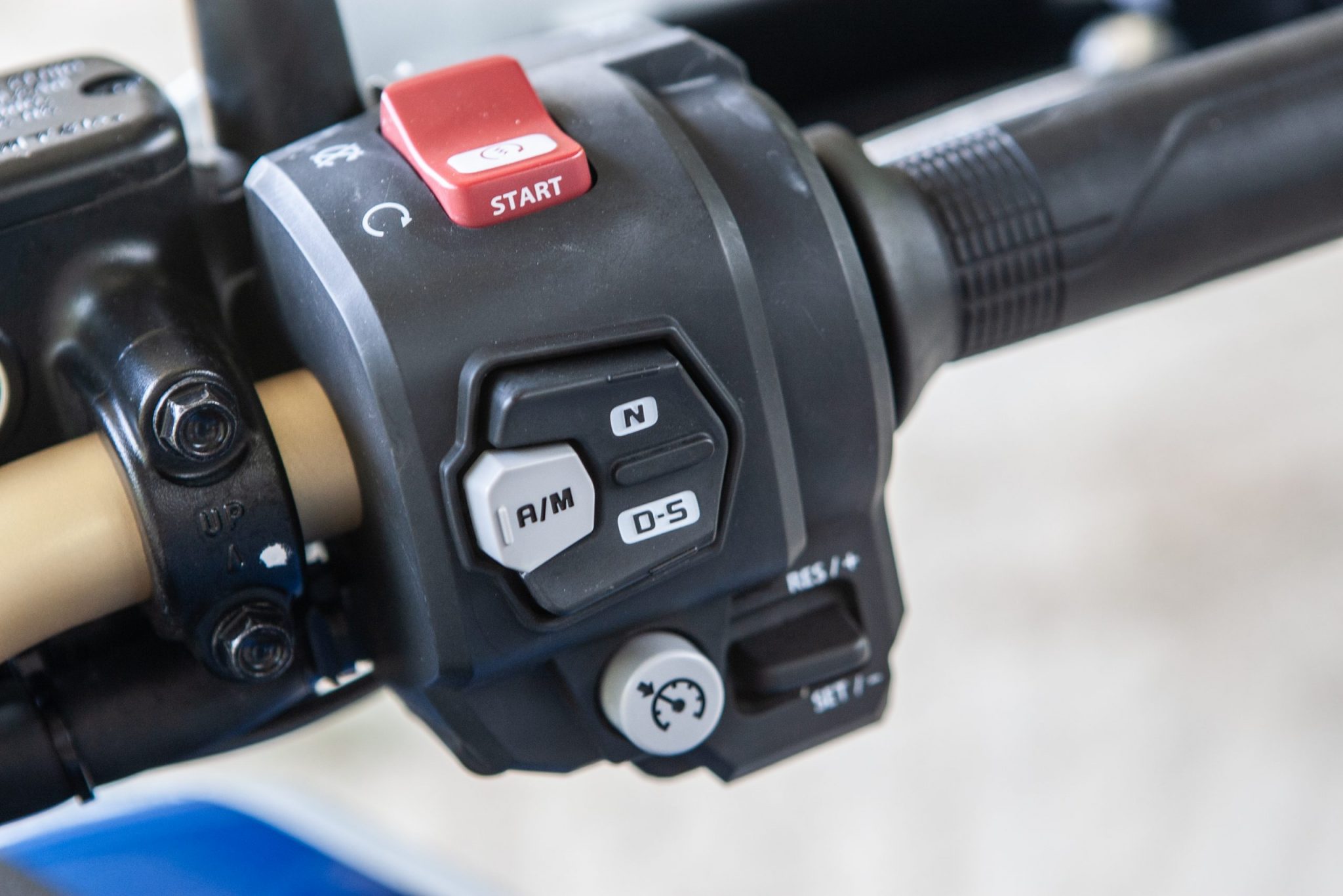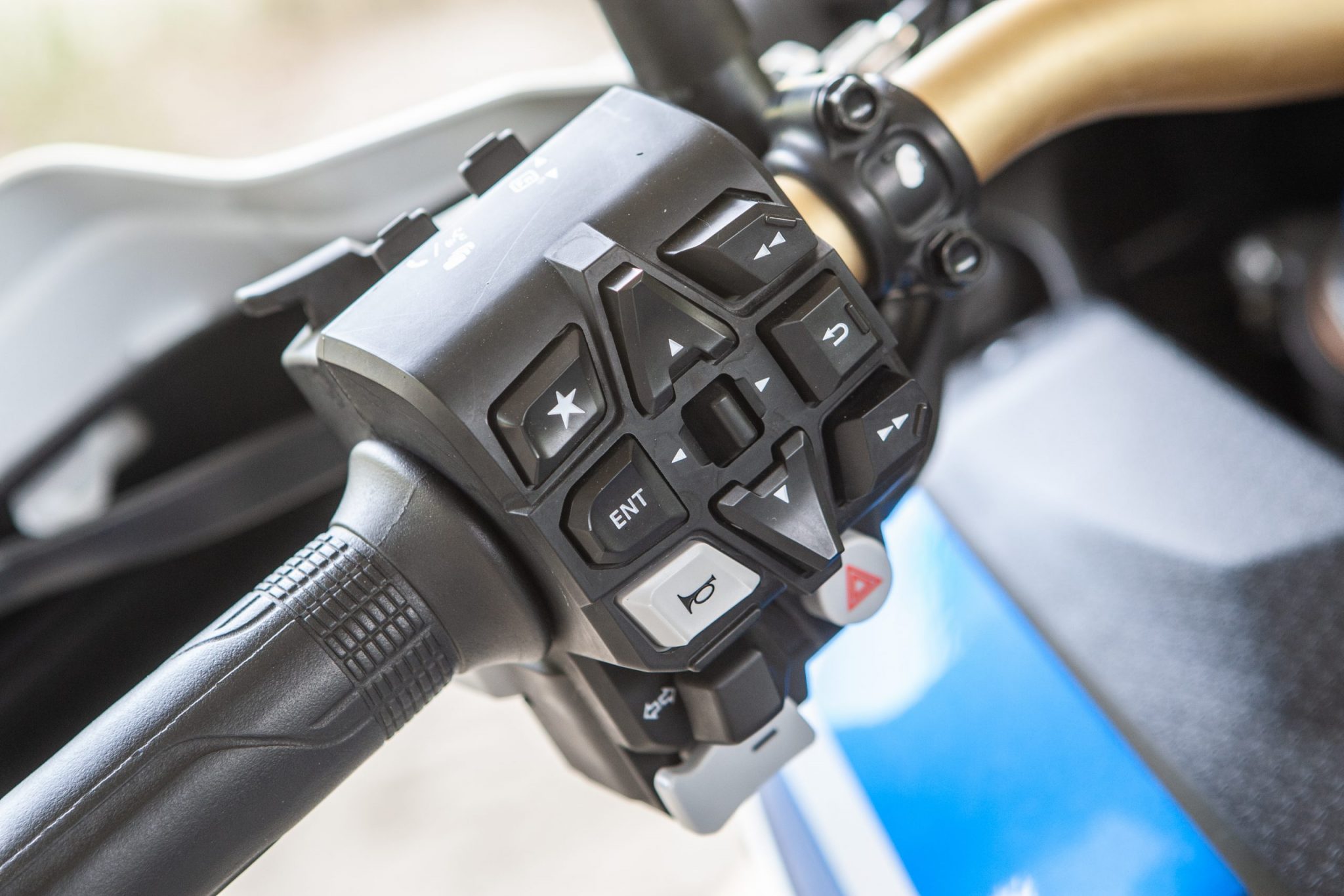 Ovládanie automatickej prevodovky máte doslovne pod pravým palcom a rýchlosti v manuálnom režime radíte zase na ľavej strane kde je umiestnené aj celé ovládanie infotaimentu a nastavenia motocykla. Na ľavej strane vedľa displeja nájdete aj 12 voltovú zásuvku a na pravej zase USB konektor bez ktorého Apple CarPlay žiaľ nefunguje.
