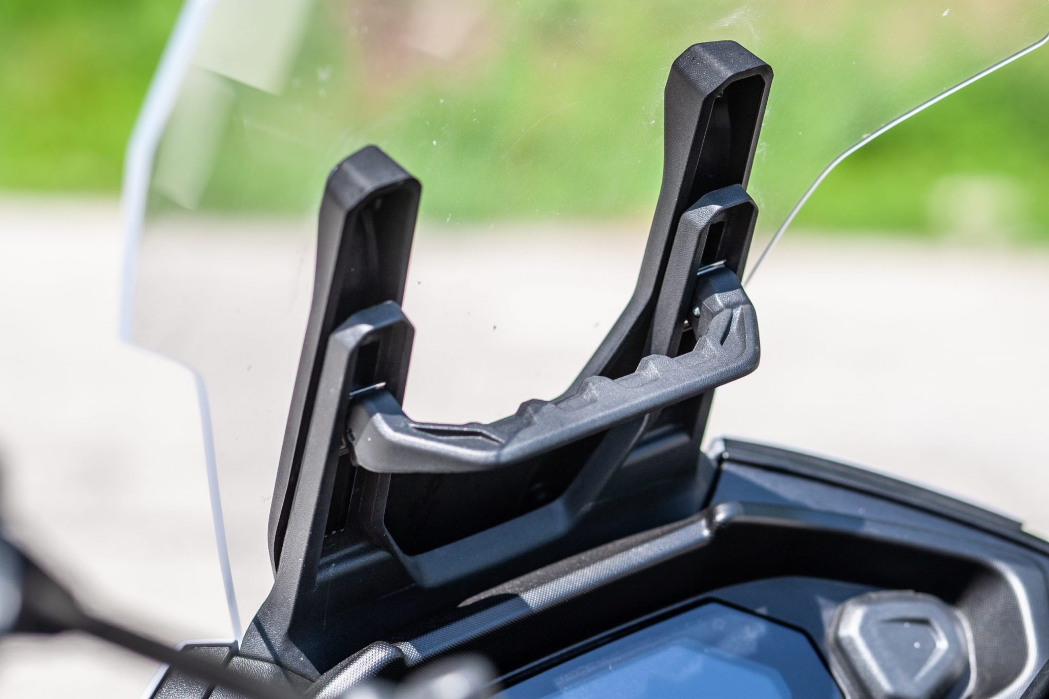 Predné plexisklo je nastaviteľné aj jednou rukou. Vo vrchnej polohe vám poskytne dostatočnú ochranu pred vetrom a v spodnej vám pošle vietor na schladenie. Polovičná kapotáž vám poskytne dostatok ochráni pred vetrom .