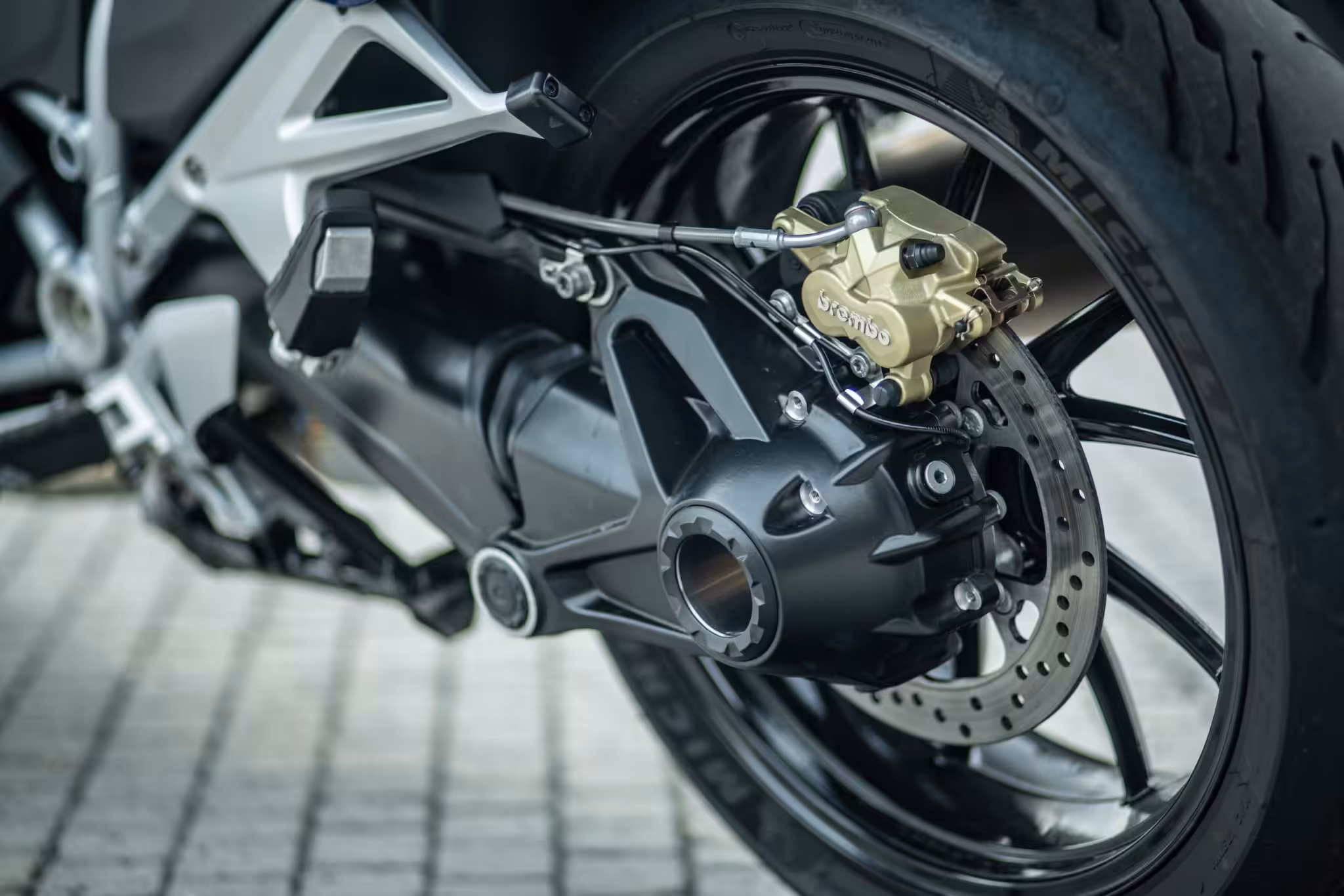Prenos výkonu nám zabezpečuje šesť stupňová prevodovka so šikmými zubami. Sekunduje jej Anti-Hoppingová spojka s obojstranným Quikshifterom, ktorý páčku spojky potrebuje len pri rozjazde. Radenie je rýchle a bez akéhokoľvek zaváhania.