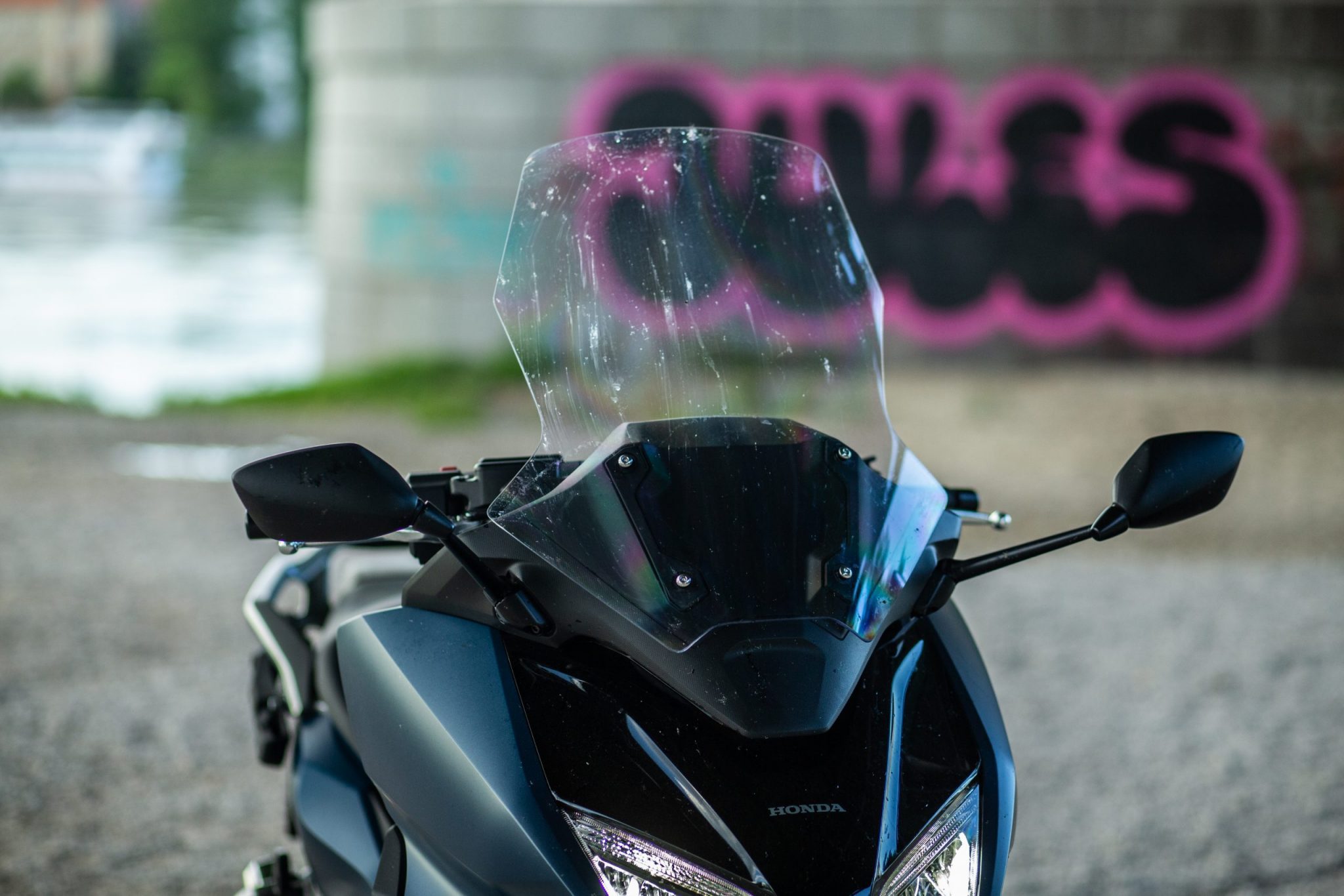 Čo mi tu však chýbalo je nastaviteľné predné plexisklo. Na Forze 750 je žiaľ namontované na pevno, čím trochu stráca oproti svojim menším súrodencom kde je možné ho nastaviť servomotorom ako na 350tke tak aj na najmenšej 125tke. Aj napriek tomu je dobre tvarované a dostatočne veľké aby vás ochránili od nepríjemného náporu vzduchu.