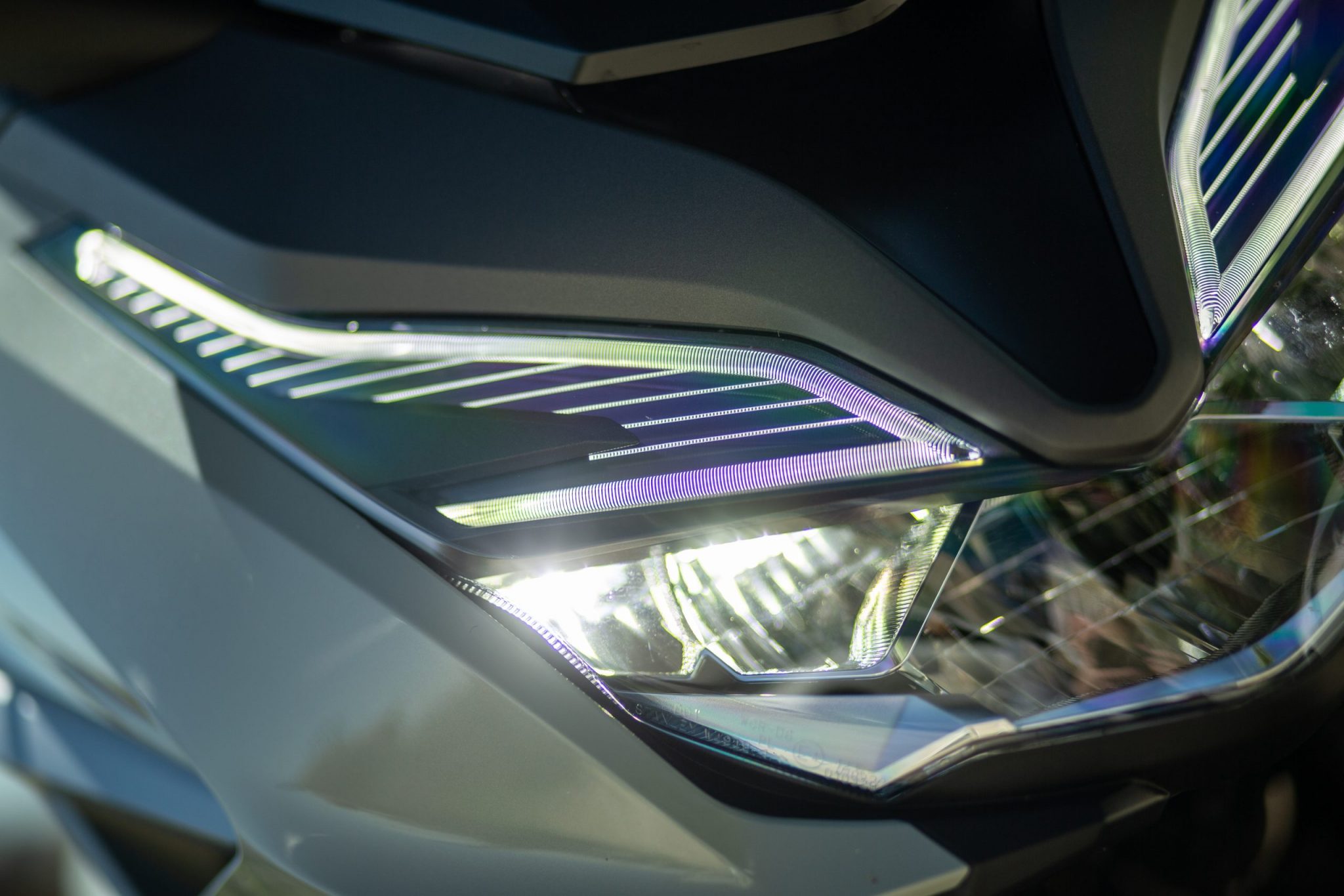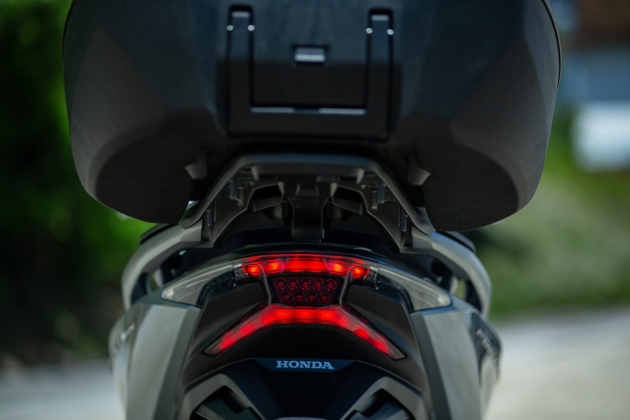 Už bežná záležitosť je Full LED osvetlenie. Smerové svetlá, sú vpredu umiestnené do krytov spätných zrkadiel. Tie sú zase umiestnené na prednej kapotáži kde je do nich veľmi dobrý výhľad. Čo sa týka dizajnu, ten má Honda v tomto prípade veľmi dobre zvládnutý a spredu si ju vďaka svetlám určite nepomýlite s ničím iným.