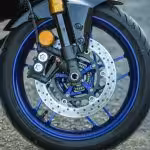 O zastavenie sa vám postará vpredu dvojkorunový brzdný systém s veľkosťou kotúča 298 milimetrov a radiálne uloženým štvorpiestikovým strmeňom. Reakcia prednej brzdy je príjemná a nie je zbytočne agresívna a “kúsavá” ale aj napriek tomu má dostatok sily na rýchle zastavenie či pribrzdenie pred zákrutou. Za ľahkosť a presnosť vďačí systému s radiálne uloženým hlavným brzdovým valčekom. Základ prednej brzdy je vo svete pretekárskych motocyklov dobre známy a Yamaha ho použila len druhý krát v sériovo vyrábaných motocykloch. Vzadu sa nachádza 245 milimetrový kotúč s jednopiestikovým strmeňom.