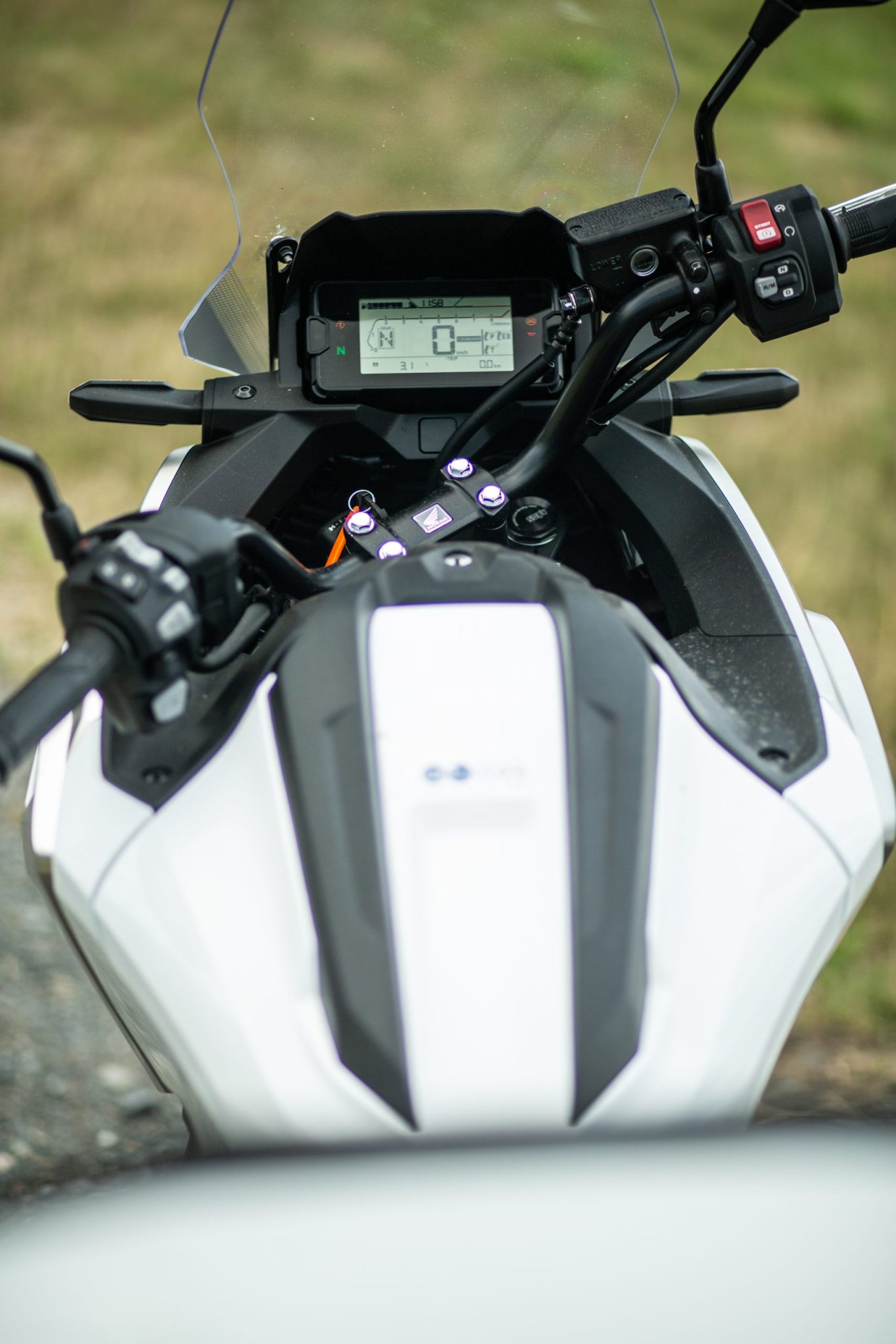 Čo sa týka obratnosti ma veľmi prekvapil a vďaka nízkemu ťažisku je ovládateľná ako omnoho menšie stroje. Do náklonov ide rada a s radosťou. Prejdime v krátkosti na posed. Výška sedla má hodnotu presných 800 milimetrov a posed je na nej vzpriamený a veľmi pohodlný. Ani po celom dni v jej sedle som nepociťoval únavu.
