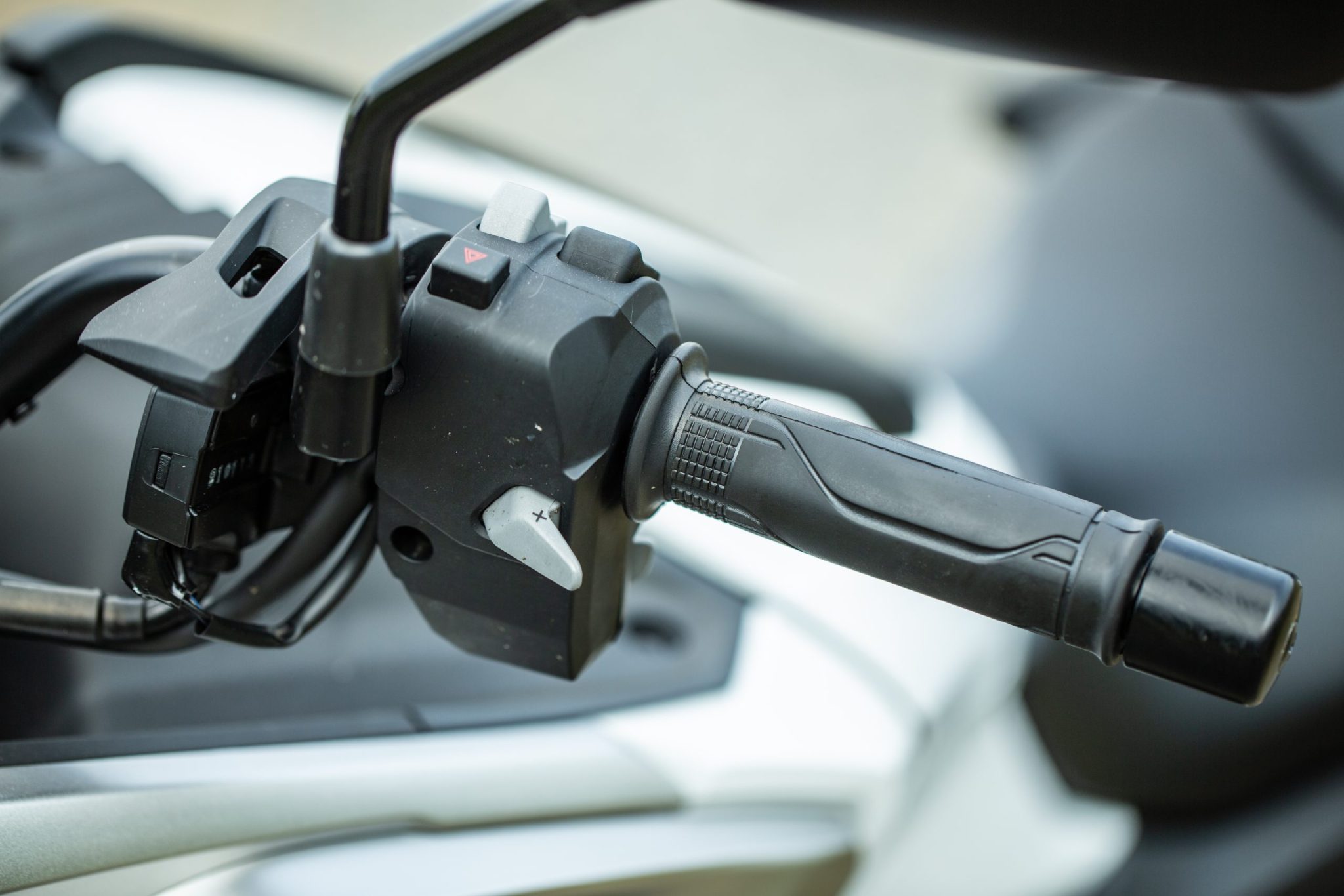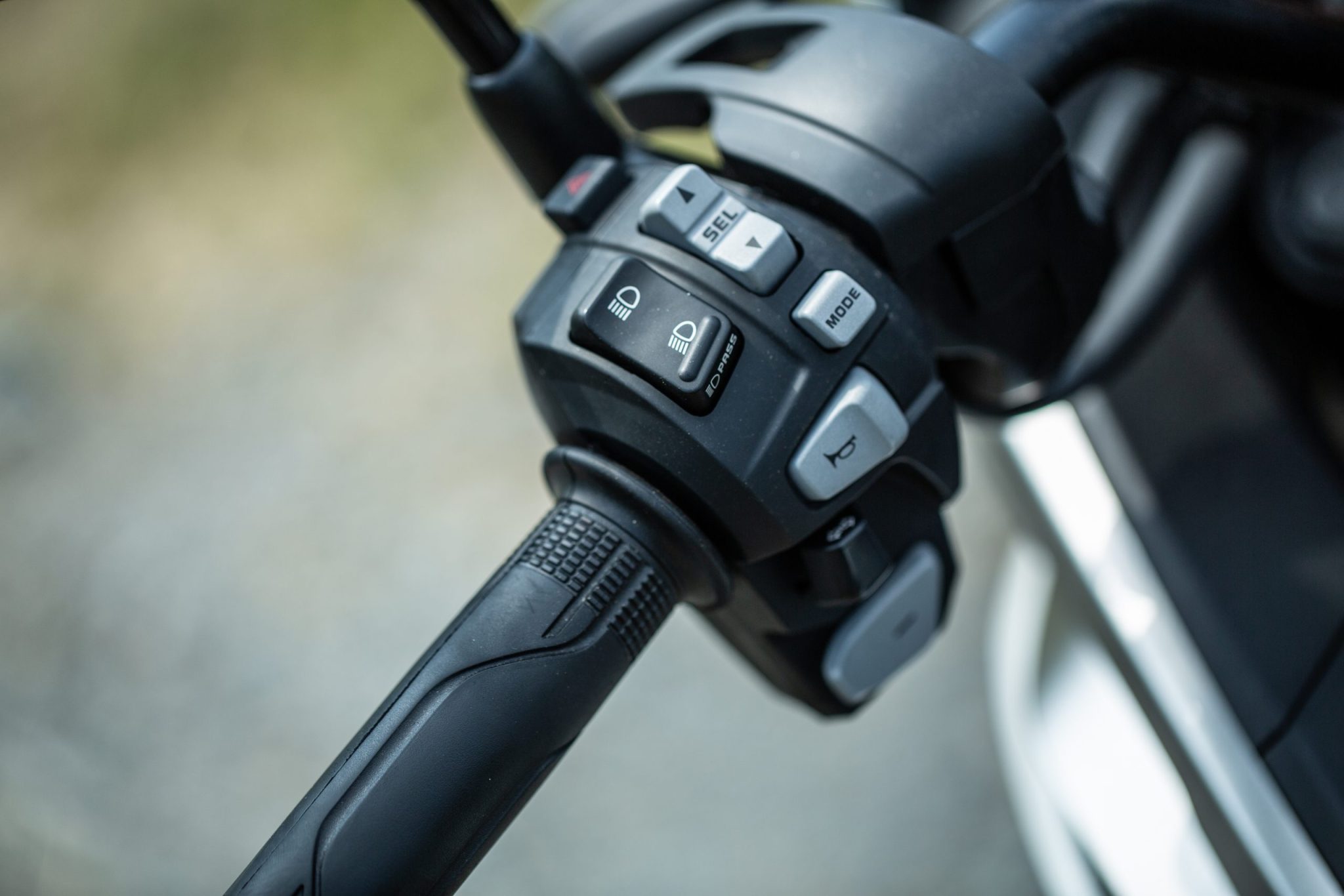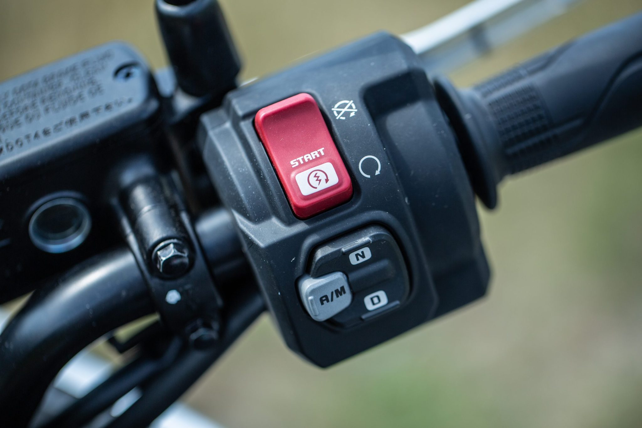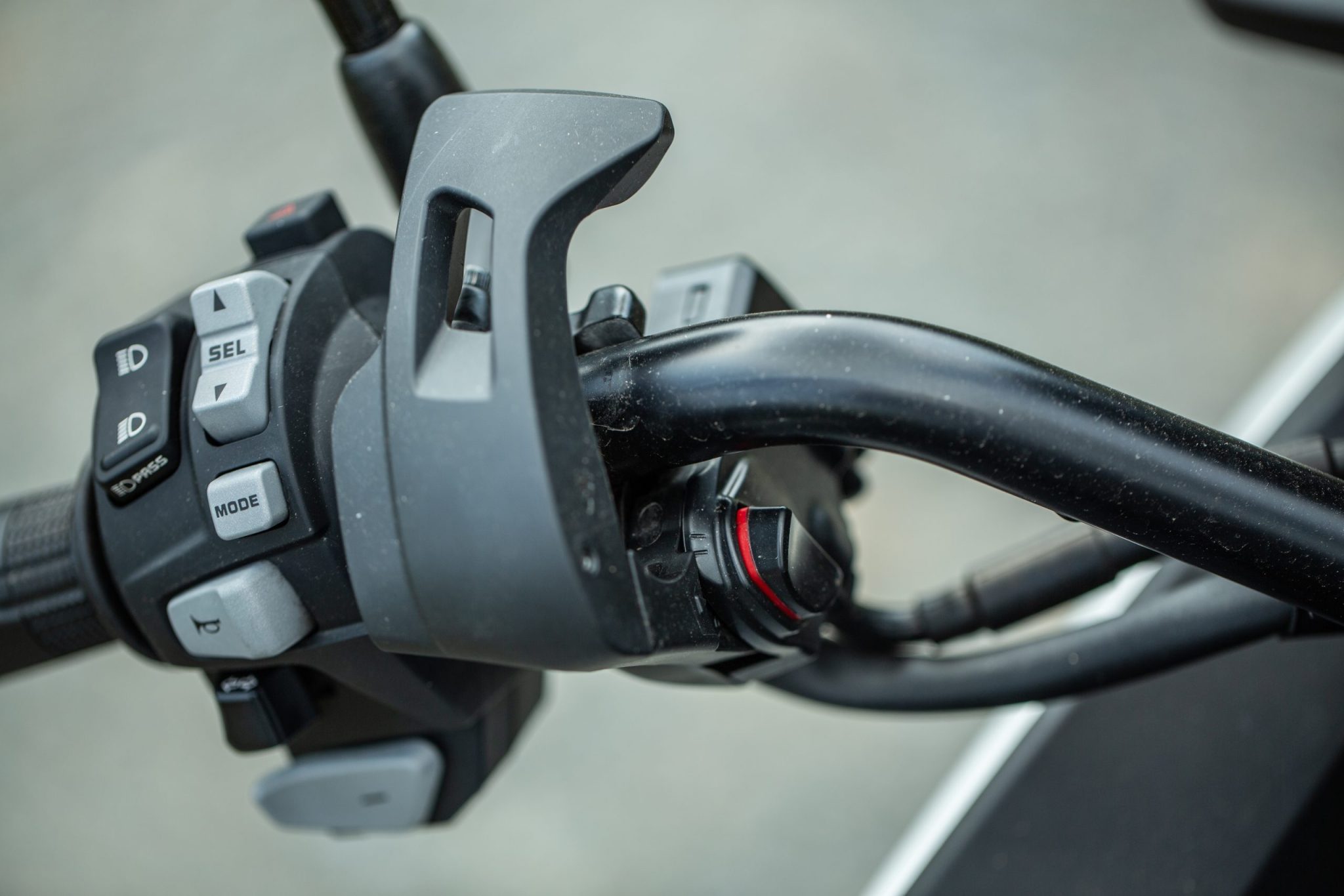 Na pravej pravej rukoväti nájdeme kill switch kombinovaný so štartovacím tlačidlom a ovládanie DCT prevodovky.