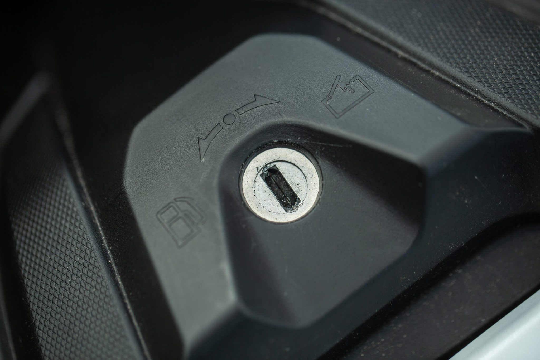 Priehradka alebo teda v tomto prípade už skôr úložný priestor je uzamykateľný. Čo mne osobne vadilo bolo to, že na otvorenie potrebujete zakaždým kľúč. Ten treba samozrejme zakaždým zo zapaľovania vybrať a presunúť o kúsok vedľa. Tým istým zámkom otvárate aj zadnú časť sedačky pod ktorou je schované veko palivovej nádrže.