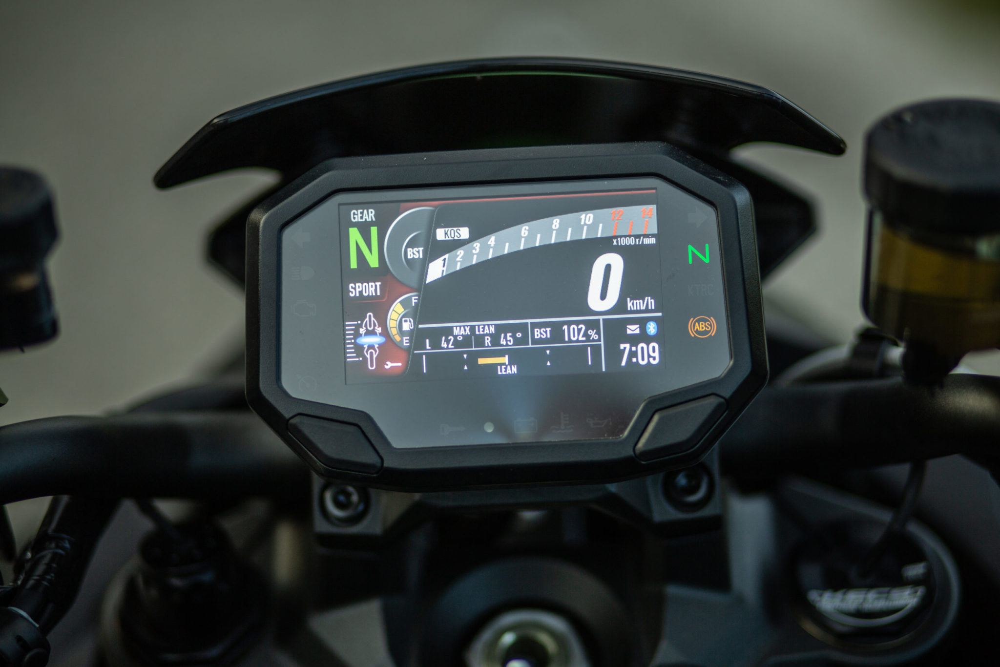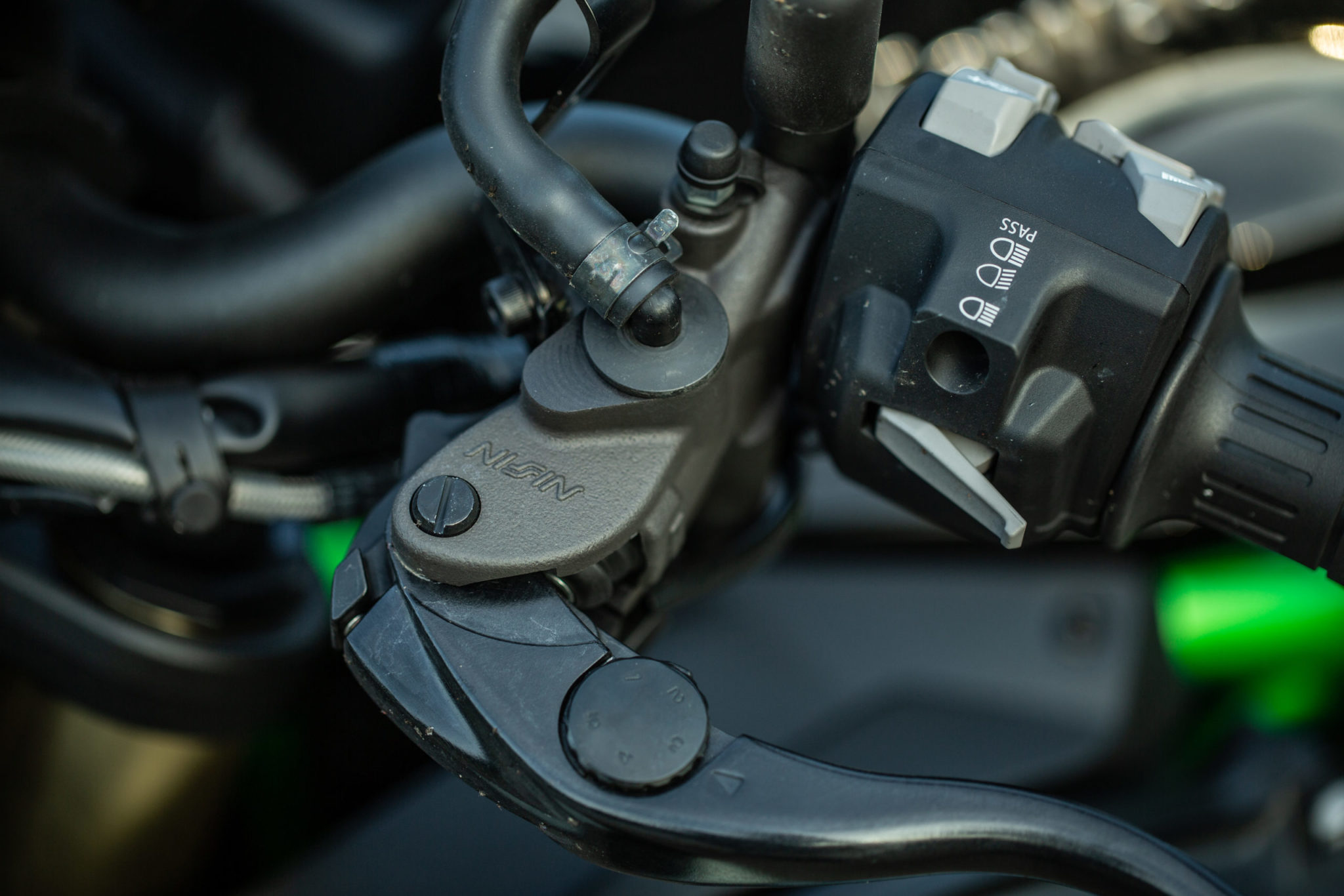 Spojka je hydraulická s pumpou od Nisin a aj keď ju budete používať len na rozbiehanie a zastavovanie ide príjemne ľahučko a aj pri absencii rýchloradenia by ste sa neunavili ani pri častom radení v meste. Pri kapacite palivovej nádrže s obsahom 19 litrov, pri kľudnejšej jazde budete mať dojazd okolo 200 kilometrov.