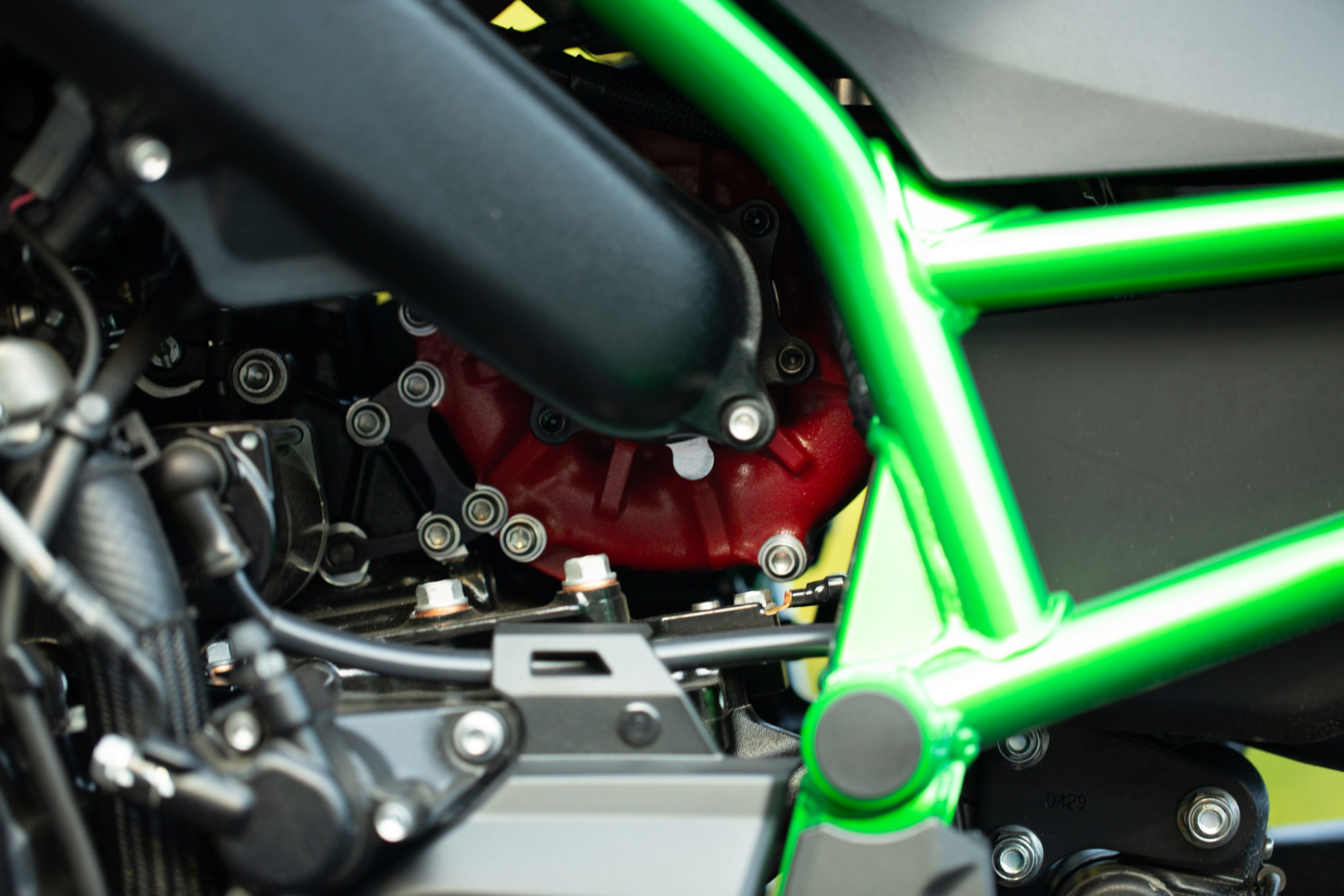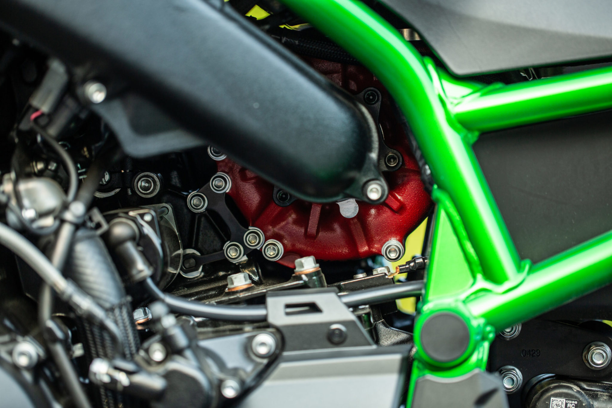 Srdcom tejto krásky je vodou chladený radový štvorvalcový motor s objemom 998 centimetrov kubických a výkonom 200 koní a 137Nm. Maximálny výkon dosiahnete pri 8 500 otáčkach. Motor spomínané parametre dosiahne aj práve pomocou kompresora ktorý je je poháňaný reťazovým rozvodom priamo z kľukového hriadeľa a dosahuje až 100 000 otáčok za minútu. Áno čítate správne! Kompresor točí až sto tisíc otáčok za minútu.