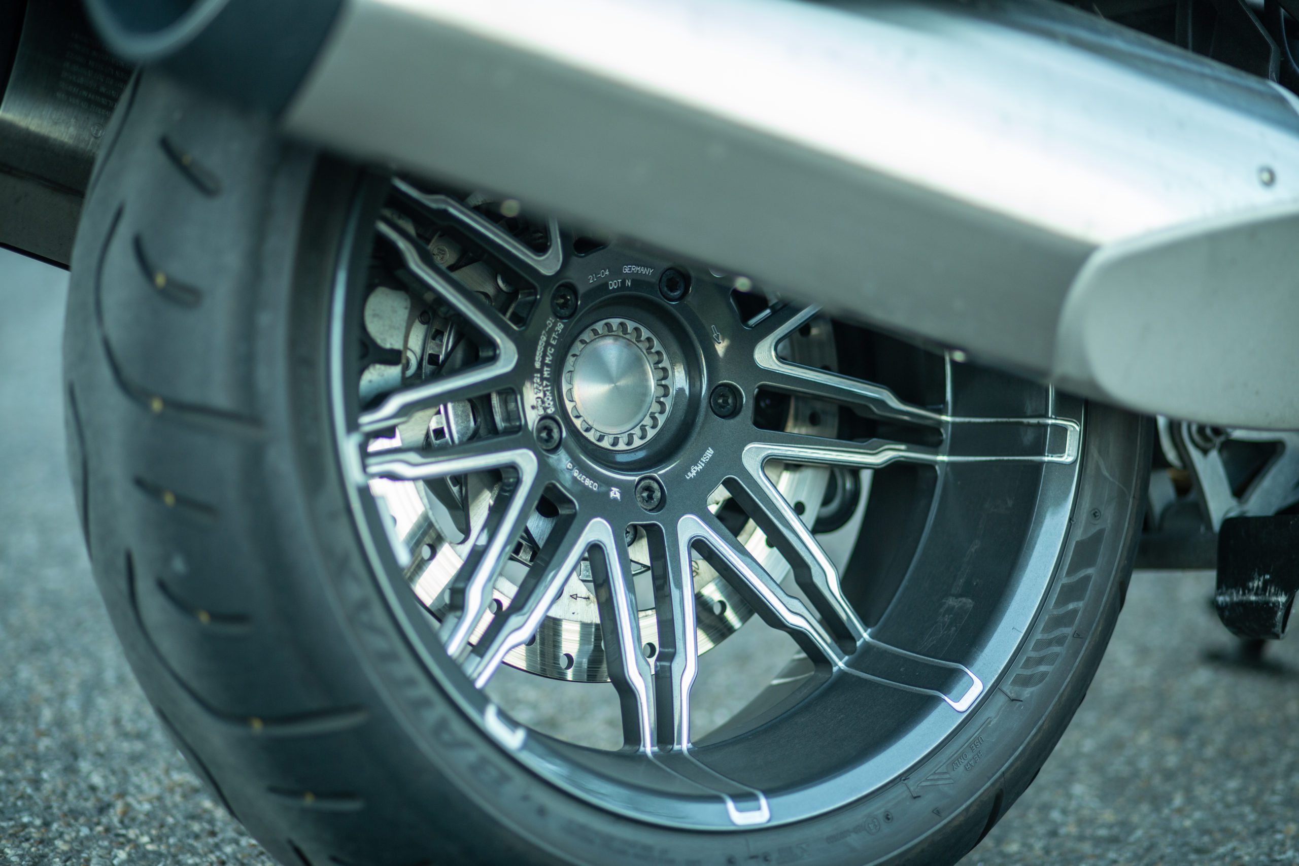 Čo sa rozbehne, musí aj zastaviť. O to sa vpredu postarajú 320 milimetrové kotúče, do ktorých hryzú štvorpiestikové strmene. Brzda je dobre dávkovateľná. S celkovou váhou motocykla, ktorá môže byť až 560 kilogramov, si s prehľadom poradí. Vzadu je to taktiež 320-milimetrový kotúč. Tu sa však do neho zahryzáva len dvojpiestikový plávajúci strmeň.