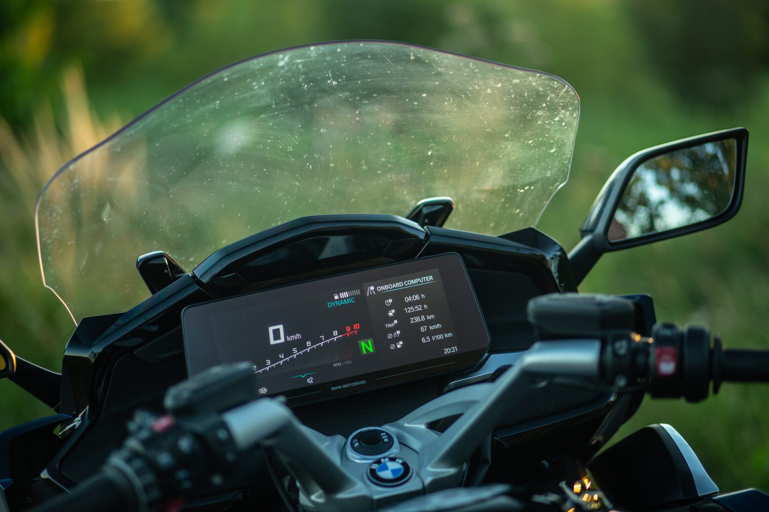 Oproti predchádzajúcej generácii BMW K 1600 GTL dostalo aj nový prístrojový panel v podobe 10,25 palcového displeja a plnou konektivitou s telefónom. Taktiež dostal do výbavy aj nové full LED osvetlenie. Tu musím spomenúť hlavný predný svetlomet, ktorý nemá v segmente motocyklov podľa mňa zatiaľ konkurenciu. Môžu mu ho závidieť aj mnohé moderné autá. Hlavná parabola sa pri náklone naklápa o 35 stupňov na každú stranu a o 2 stupne hore-dole. Pri jazde v noci som videl naozaj všetko a nočná jazda bola naozajstným zážitkom. Čo mi ale vo výbave určite chýbalo, bol adaptívny tempomat. Napriek tomu, že ho BMW vo svojej ponuke má, do výbavy BMW K 1600 GTL sa žiaľ nedostal.