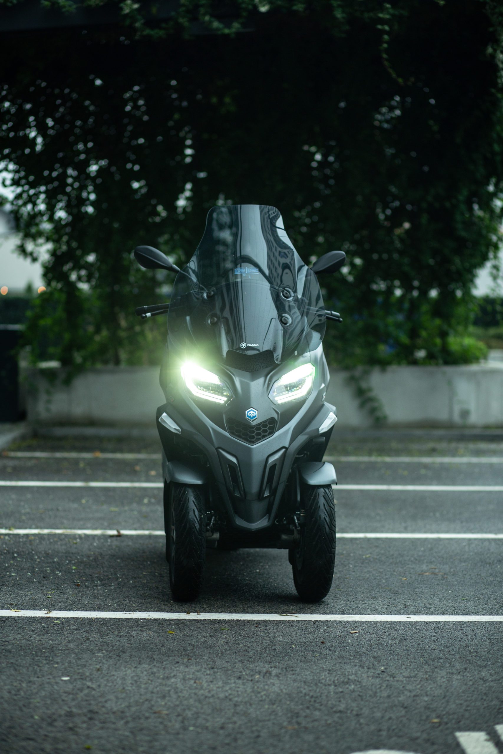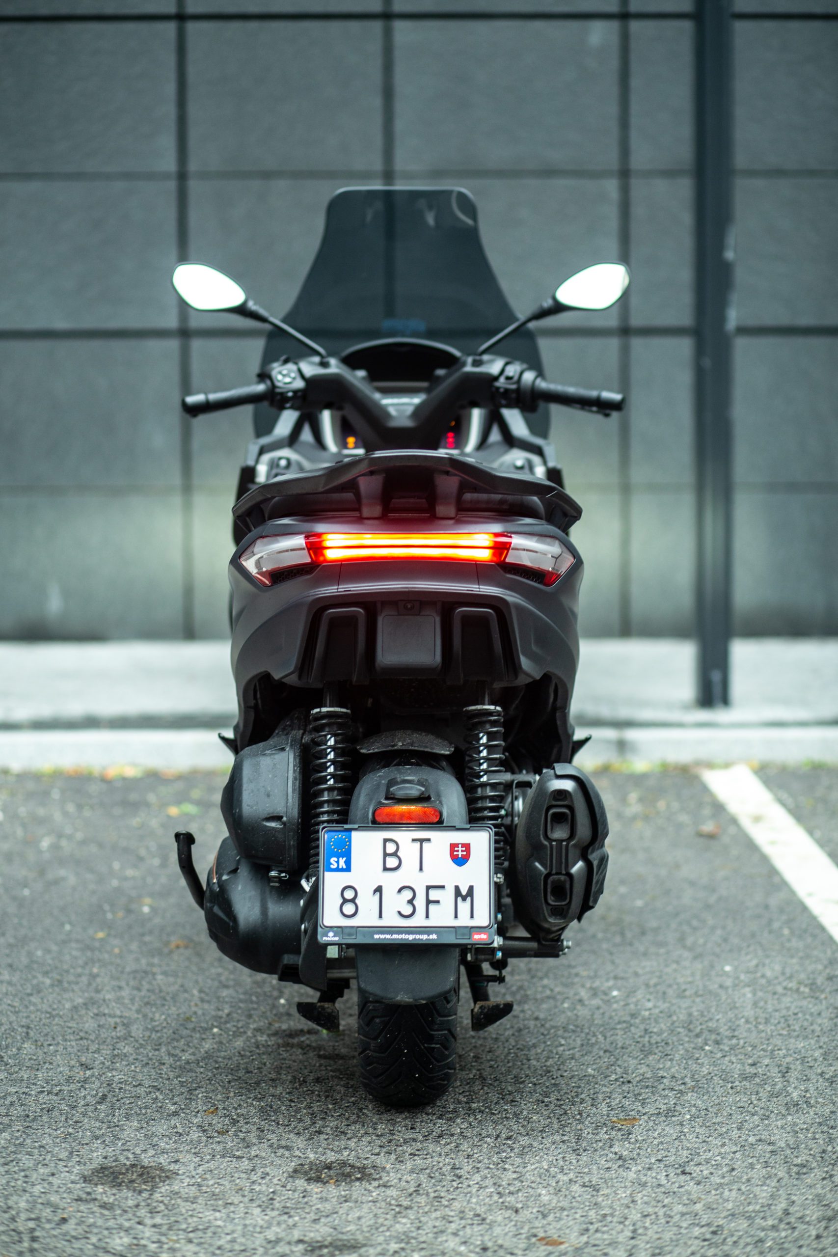 Full LED osvetlenie je už štandardom. Keyless systém sa taktiež prebojovalo do segmentu skútrov. Sedlo je pohodlné a radi sa na neho budete vracať. Úložný priestor pod sedlom je dostatočne veľký na odloženie jednej integrálnej prilby a pár ďalších drobností. Čo sa týka jazdných vlastností, tak po úvodnom zvykaní si na seba, čo netrvalo dlho, musím povedať, že je dobre ovládateľný aj v nižších rýchlostiach. Vďaka dvom predným kolesám vám dáva istotu aj vo väčších náklonoch, do ktorých sa taktiež veľmi rád púšťa. Aj keď kvôli charakteru zavesenia odozva od predných kolies nie je ideálna, na môj vkus až veľmi dobre žehlí povrch a pôsobí trochu sterilným dojmom.