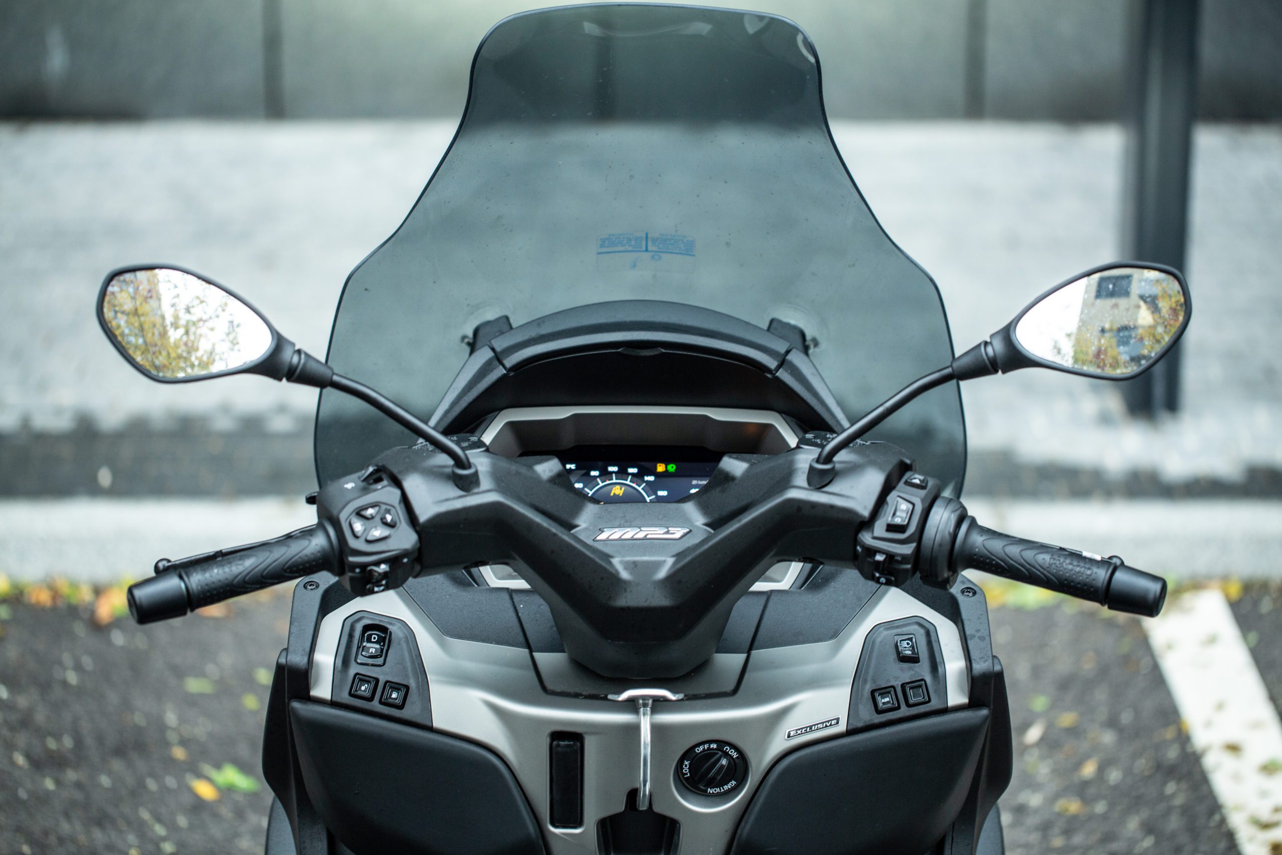 Okrem nezvyčajnej koncepcie dvoch kolies vpredu je aj nabitý elektronikou. Piaggio MP3 Exclusive je poháňaný jednovalcovým motorom s objemom 530 centimetrov kubických a výkonom 44 koní. Vpredu má MP3 dva 258-milimetrové kotúče, na každom kolese jeden, do ktorých sa zakusujú jednopiestikové strmene. Vzadu je to zase jeden 240-milimetrový kotúč.