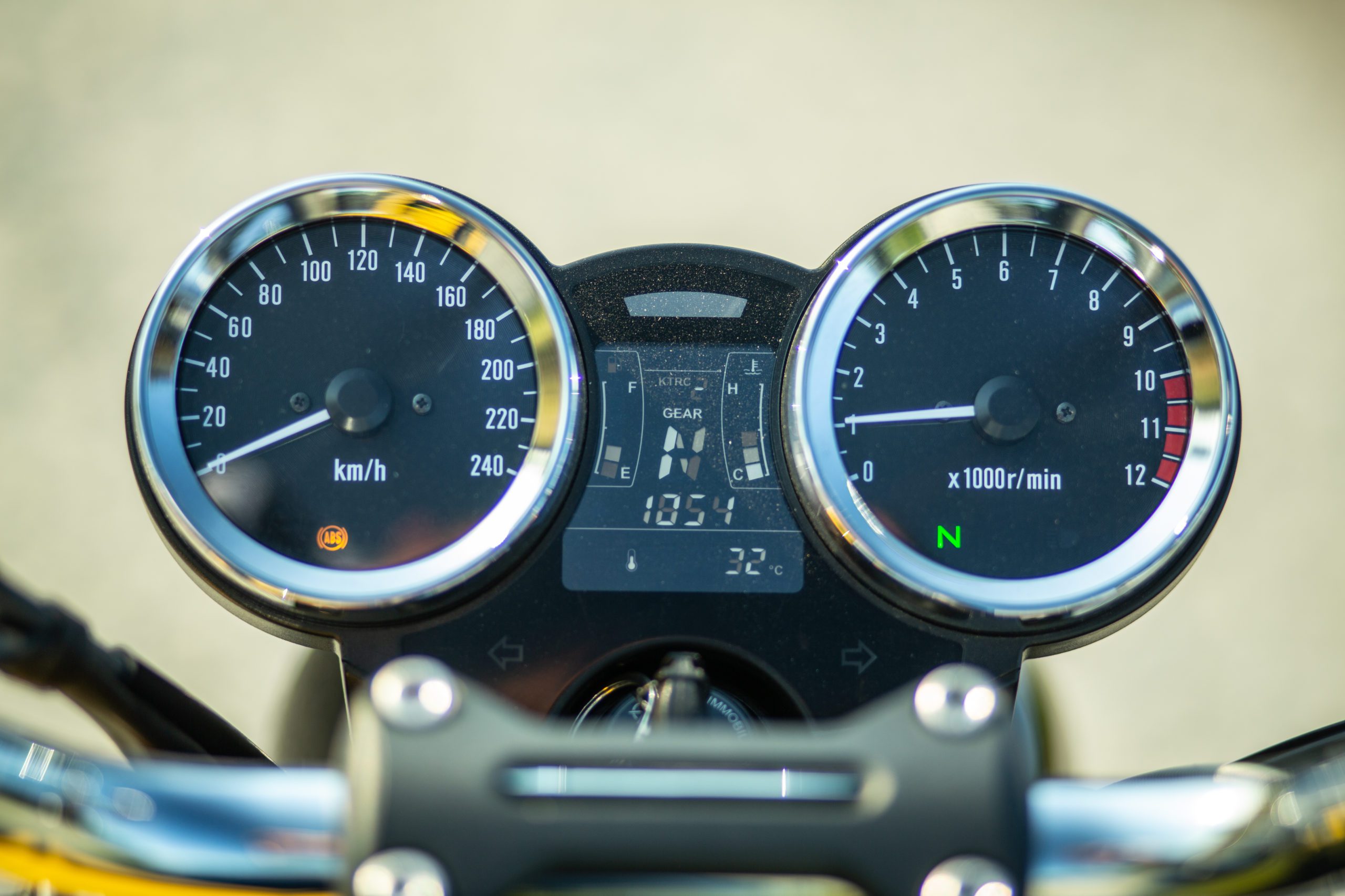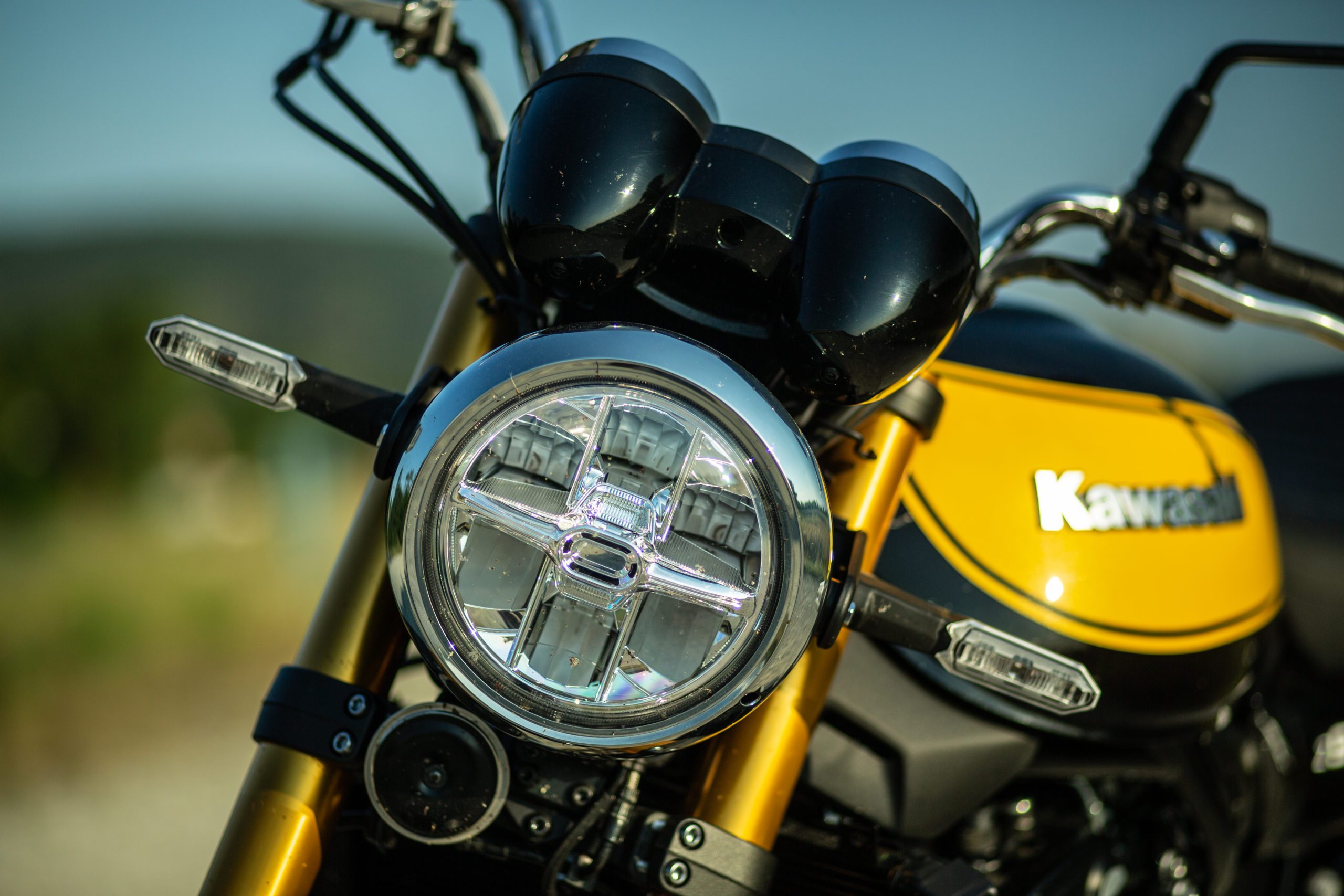 Full LED osvetlenie, bez ktorého už novú motorku asi ani nekúpite, je samozrejmosťou aj tomto prípade. Prístrojový panel a aj ovládacie prvky sú čo najjednoduchšie. Informácie o jazde vám Kawasaki Z900RS SE sprostredkuje cez dvojicu okrúhlych klasických budíkov Na nich nájdete rýchlomer, ktorý je vpravo a otáčkomer zase vľavo. Rozdelené sú inverzným LCD displejom, na ktorom okrem aktuálneho zaradeného prevodového stupňa uvidíte aj teplotu a stav paliva. Celé to je zahalené v peknom čiernom domčeku, ktorý taktiež odkazuje na pôvodnú Z1-tku.