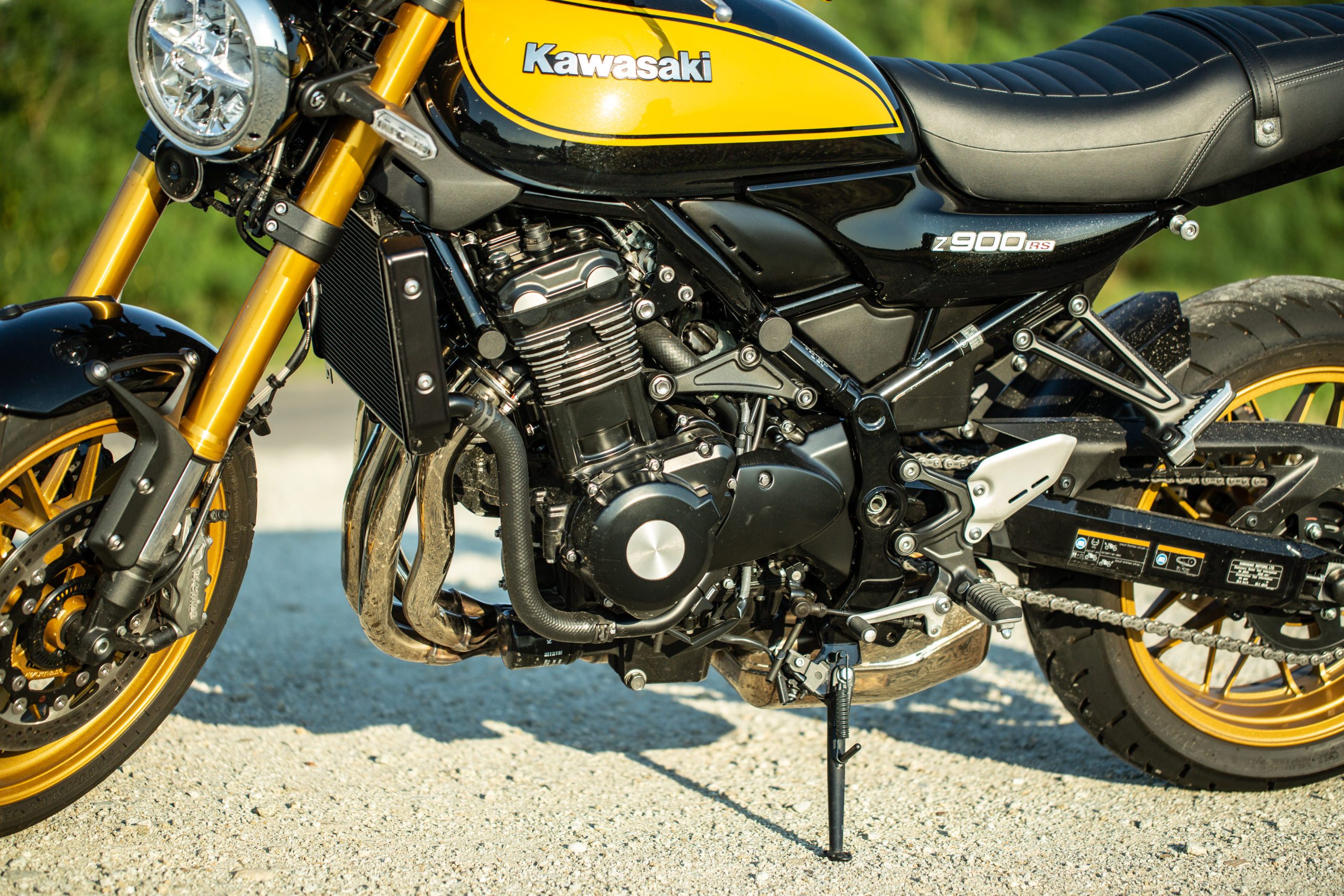 Kawasaki Z900RS SE má rovnaký motor ako jej staršia sestra Z900RS, a to vodou chladený radový štvorvalec s objemom 948 centimetrov kubických s výkonom 111 koní. Motor má dostatok energie a je stavaný na akúkoľvek jazdu. Či s ňou budete len pokojne jazdiť a kochať sa okolím alebo si ju poriadne užijete pri športovejšej jazde, nemusíte mať strach, zvládne všetko. Pri športovejšej jazde si ale pýta vyššie otáčky. Odmení vás však príjemnou reakciou na pridanie plynu, dostatočnou silou aj dynamikou. Reakcia na plyn je trochu vláčnejšia, ale zato dobre dávkovateľná. Pri spotrebe 5,2 litra, ktorú udáva výrobca a s objemom nádrže 17 litrov, poskytne naozaj dobrý dojazd. Mne sa na túto hodnotu ale dostať nepodarilo. Keďže v každej možnej situácii vás bude presviedčať, aby ste jej poriadne pridali a tomu sa predsa nedá odolať…