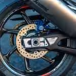 O prenos výkonu sa stará šesťstupňová prevodovka spriahnutá s antihopingovou spojkou a rýchlo radením (quickshifterom) hore aj dole, ktoré reaguje bez akýchkoľvek okolkov snáď ešte skôr, ako sa vôbec dotknete radičky. Okamžite a presne zaradí to, čo potrebujete. O zastavenie sa vpredu stará dvojkotúčová brzda s priemerom 320 milimetrov a pevným štvorpiestikovým strmeňom. Povely prijíma od radiálneho hlavného brzdového valca Nissin, ktorý s ľahkosťou dokážete aj v krízových situáciách ovládať len jedným prstom. Čo by to však bolo za vlajkovú loď, keby aj tu na vás nedávala pozor elektronika. Tá vám dovolí odlepiť zadné koleso od zeme a bezpečné vás zastaví. Vzadu nájdeme 220-milimetrový kotúč s jednopiestikovým plávajúcim kotúčom.