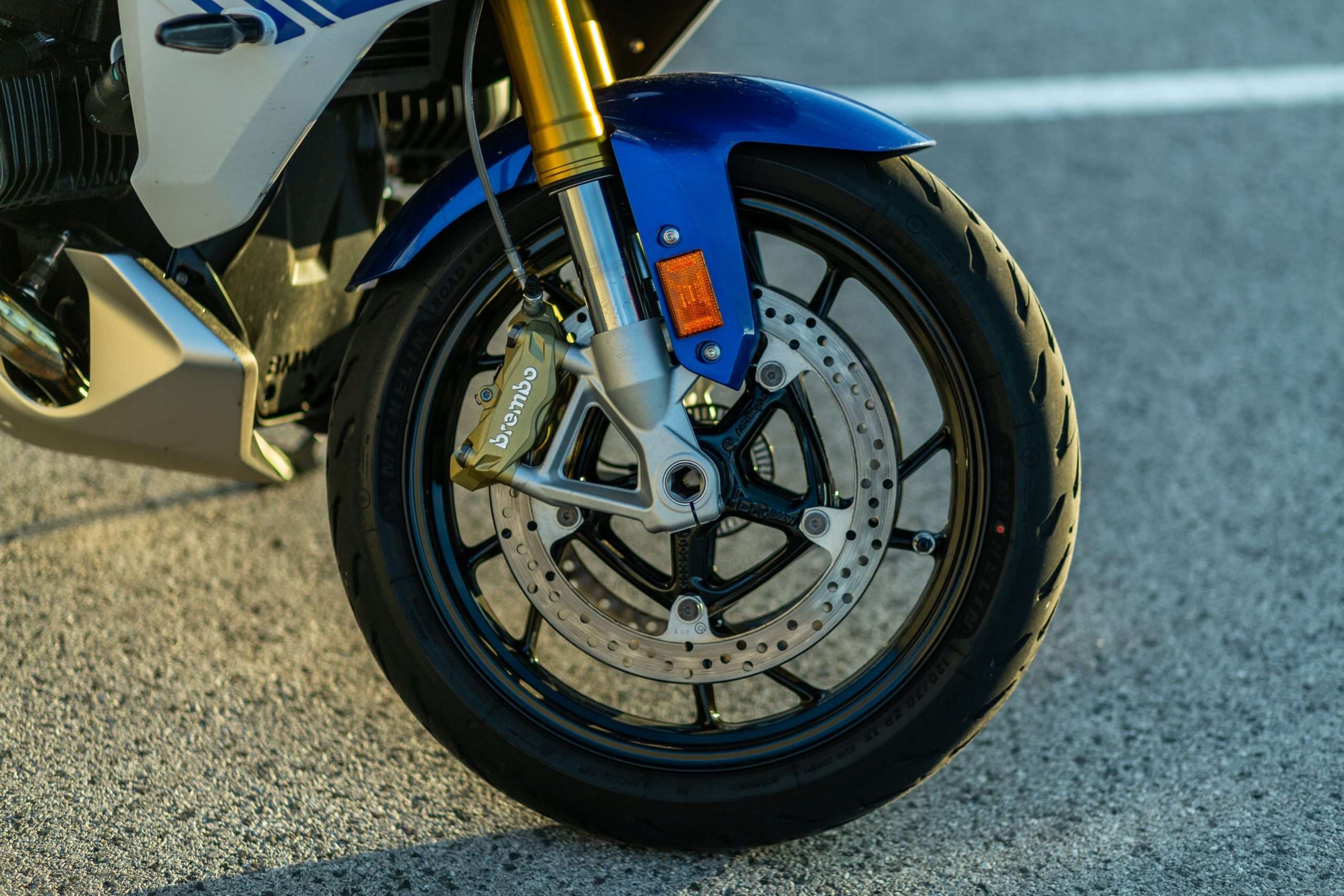 O zastavovanie sa tu vpredu stará dvojkotúčová brzdová sústava s plávajúcim kotúčom s rozmerom 320 milimetrov, do ktorého sa zakusujú štvorpiestikové radiálne uchytené strmene. Reakcia brzdy je presná a bez problémov ju môžete ovládať aj jedným prstom. V núdzovom brzdení ako aj pri športovejšej jazde, pri ktorej sa rozhodne nenechajú zahanbiť a bez problémov zastavia celú tú premotivovanú kôpku, čo ju ovláda. Vzadu je to 276-milimetrový kotúč, do ktorého sa zakusuje zase dvojpiestikový plávajúci strmeň. Celkové jazdné vlastnosti má zase na starosti elektronická predná USD vidlica a zadná jednoramenná kyvka s uchytením BMW Paralever.