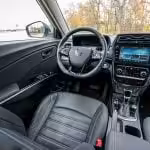 Zvyšok kabíny je tiež veľmi pekne spracovaný, plasty nebijú do očí a stredobodom pozornosti sa stane stredový panel, ktorý má atypický tvar. Páči sa mi, ako sú v ňom zapracované výduchy kúrenia a nezaberajú zbytočne miesto na palubnej doske. Osobne ma potešili aj tlačidlá na nastavenia kúrenia či klimatizácie, keďže prehrabávať sa každú chvíľu v nastaveniach displeja nepatrí k mojim koníčkom.