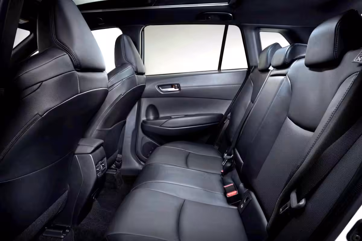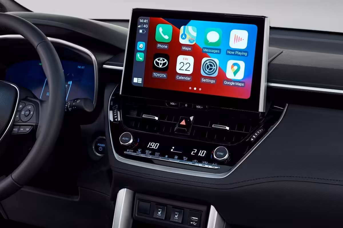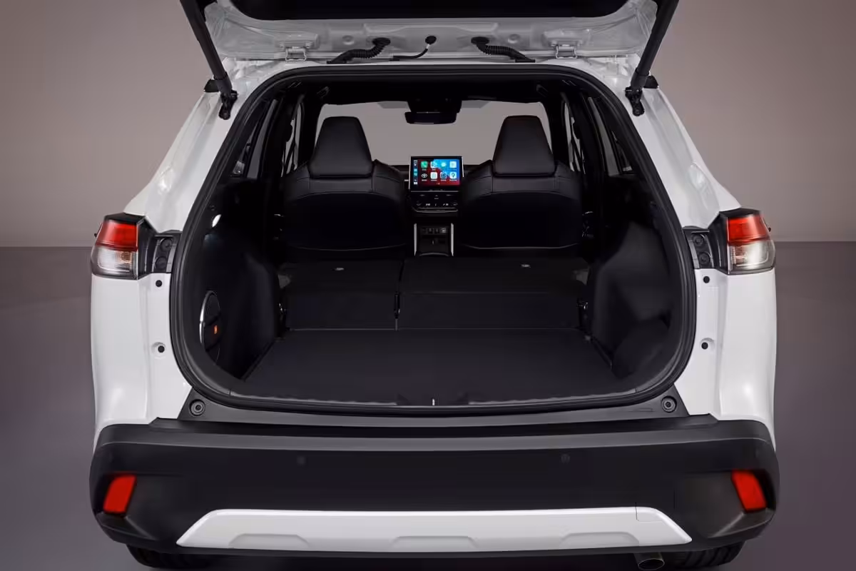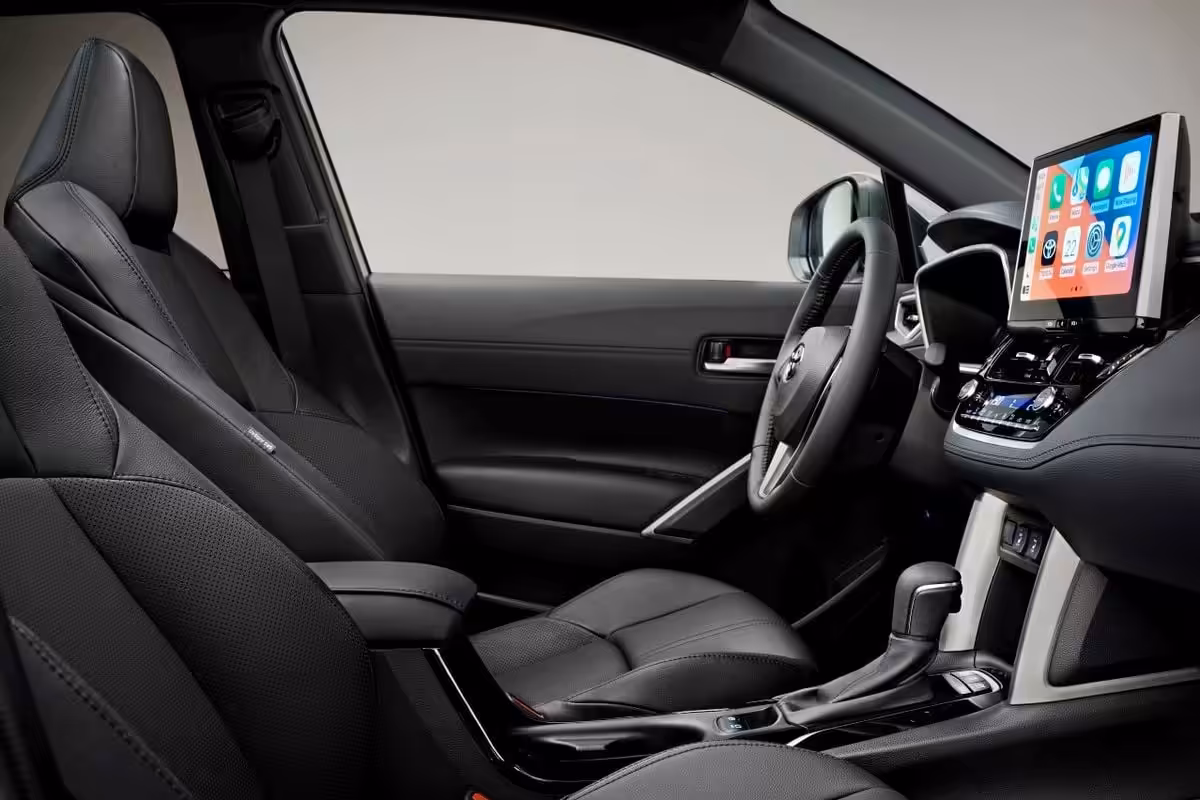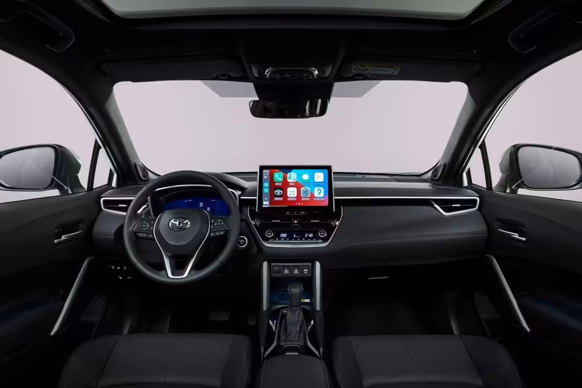 Interiér pripomína klasickú Corollu, keďže majú zhodnú palubnú dosku ale verzia Toyota Corolla Cross disponuje väčším priestorom nad hlavou, na nohy. Na základe vyššieho posedu poskytuje aj lepší výhľad z vozidla. Európska verzia bude vybavená úplne novým infotainmentom. Digitálna prístrojová obrazovka má až 12,3-palcov a k tomu nový 10,5-palcový multimediálny displej v jej strede. Podľa všetkého sa jedná o najväčší displej v triede. Nechýbajú funkcie ako Apple CarPlay a Android Auto. Služby Toyota Smart Connect poskytujú cloudovú navigáciu či aktualizácie softvéru. Aplikácia MyT ponúka diaľkový prístup k vozidlu, či už k údajom palubného počítača, zistenie polohy vozidla, diaľkové ovládanie klimatizácie a zamykania dverí.