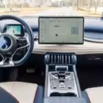 Prvým, čo vám vbehne do pohľadu je vcelku obrovský, 15,6 palcový otočný displej infotainmentu. Interiér hľadal svoju inšpiráciu v fitness a hudbe. Pýtate sa ako sa môže interiér inšpirovať týmito dvoma odvetviami ? Odpoveď je prostá. Pod obrazovkou infotainmentu sa nachádzajú výduchy klimatizácie v tvare činky. Riadiaca páka má rovnaký štýl ako tyče v posilňovni a lakťová opierka výrazne pripomína bežiaci pás. Aby toho nebolo málo, palubnú dosku spracovali v štýle svalových vlákien.