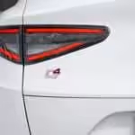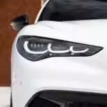 Najvýraznejšou zmenou sú však  predné svetlomety s novou grafikou denných LED svetiel odkazujúcou na slávny model SZ Zagato, čím sa dizajnovo približujú k novšiemu kompaktnému SUV Tonale. Svetlomety navyše disponujú matrixovou funkciou. V noci pracujú bezchybne a majú naozaj rýchlu reakciu na oproti idúce vozidlá. Súčasťou nami testovanej výbavy Veloce bolo kontrastné čierne lemovanie i červené strmene bŕzd spolu s 20 palcovými diskami Lusso. V kombinácii s bielou karosériou ide o veľmi podarenú konfiguráciu, ktorá vizuálne zaujme.