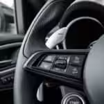 Veľkým potešením bola všade prítomnosť fyzických tlačidiel a nechýbal ani samostatný panel klimatizácie. Tlačidlá sú intuitívne usporiadané, čím sa minimalizuje potreba ich hľadania počas jazdy. Trojramenný volant pôsobí športovo s dobrou ergonómiou držania. Nechýba tlačidlo štartovania priamo na volante a volič jazdných režimov v štýle DNA. Samozrejmosťou sú veľké hliníkové pádla pod volantom, typické pre modely Stelvio a Giulia. Pravdou je, že som si na ne musel chvíľu zvykať, keďže blokujú páčky na smerovky a stierače. Neskôr som si ich ale nemohol vynachváliť.