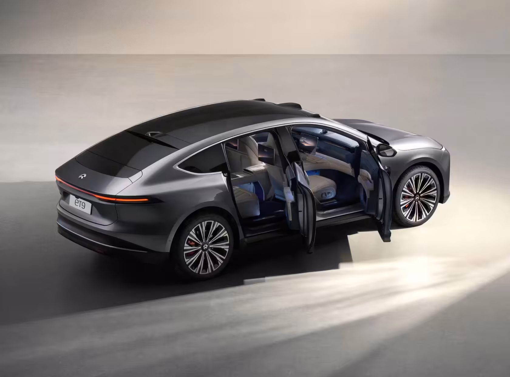 Nio ET9 je napríklad prvým modelom, ktorý obsahuje interne vyvinutý 5-nm čip. Ten má okrem mnohého iného umožniť dokonalejšie autonómne riadenie. Karoséria má tvar SUV-kupé. Vonkajšie rozmery sú skutočne monumentálne – 5 325 x 2 016 x 1 620 mm, pričom rázvor je dlhý 3 250 mm. Kvôli dĺžke rázvoru model ET9 nebude kompatibilný so stanicami na výmenu batériu prvej a druhej generácie. Vodiči týchto vozidiel budú môcť túto službu využívať iba na staniciach 3. a 4. generácie. Napriek obrovským rozmerom nejde o 7-sedadlové vozidlo a dokonca ani o 5-miestne. Vzadu nájdete dve luxusné polohovateľné kreslá, pričom to pravé umožňuje podobnú konfiguráciu sedenia, resp. v tomto prípade už takmer ležania ako napríklad v BMW radu 7.