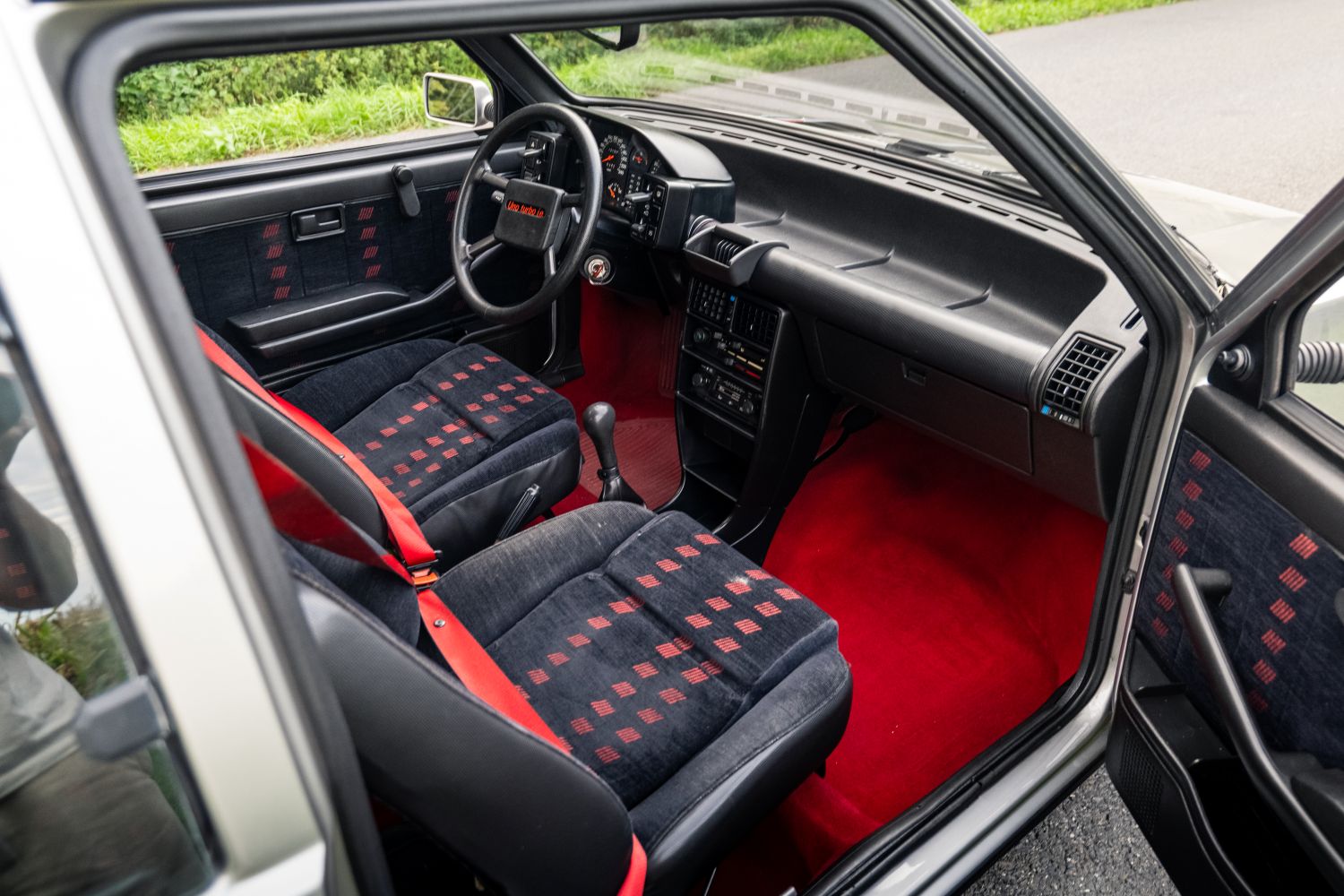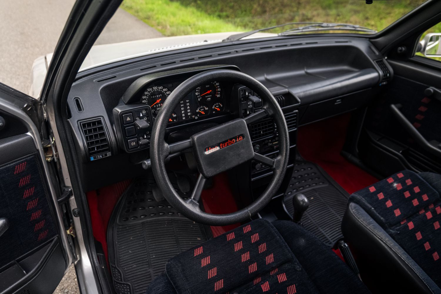 Interiér modelu Fiat Uno Turbo i.e. pôsobí jednoducho a funkčne, presne v duchu 80. rokov. Fiat sa sústredil na vodiča a na to, aby všetko malo jasný účel. Palubná doska má priamu a prehľadnú architektúru, ktorá neodvádza pozornosť od jazdy. Tvar prístrojového panelu vychádza z hranatého dizajnu tej doby, no pôsobí usporiadane a prehľadne. Vodič má všetky ovládacie prvky v dosahu rúk, čo podporuje prirodzený pocit kontroly.
