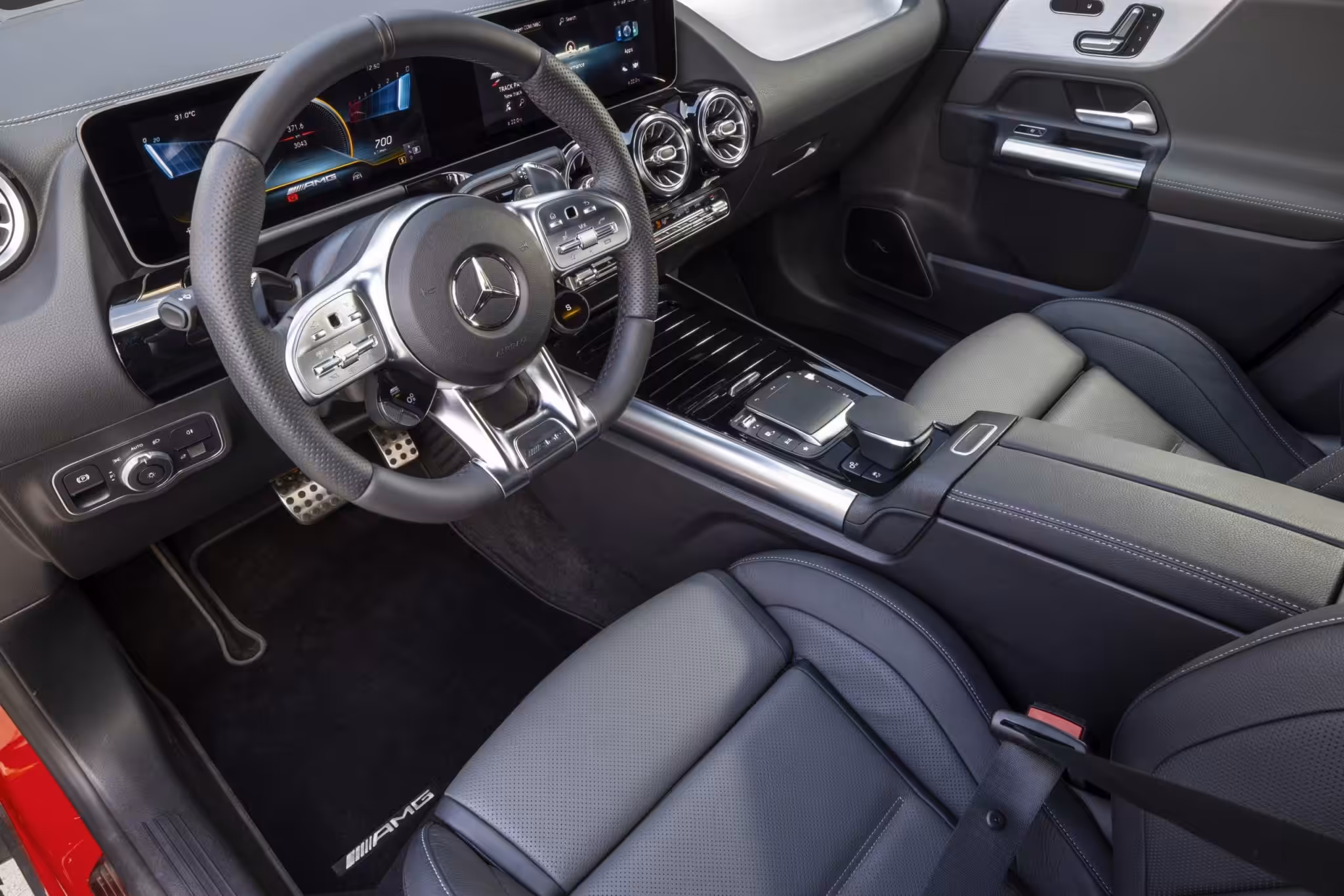 Interiér všetkých modelov z dielne divízie AMG prináša jedinečný pôžitok zo zmyslu pre detail. Mercedes patrí dlhodobo k tvorcom šablóny pre športové stvárnenie vozidiel naprieč všetkými kategóriami. Najmä unikátny športový volant ktorý patrí, azda medzi to najlepšie na trhu.
