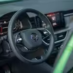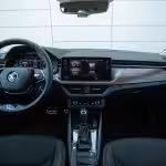 Interiér výbavy Scoutline nemusí sedieť každému. Má totiž špecifický obklad prístrojovej dosky Ash Wood s chrómovým dekorom. Sedadlá sú pohodlné, dobre tvarované a pri prejazdoch v zákrutách vás udržia presne tak, ako potrebujete. Stredobodom pozornosti je určite masívny 9,2“ zábavný infotainment. Okrem príplatku zaň však dostanete aj 10“ digitálny prístrojový štít. Novinkou je dvojramenný volant aj pre Kamiq. Ten sme vám už predstavili v recenzii na Škodu Octavia. Za čo Škodu kvitujem je to, že si nechali ešte zopár manuálnych ovládačov na reguláciu klimatizácie.