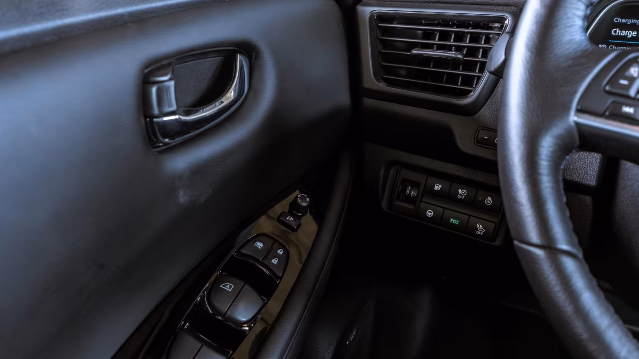 Leaf e+ je tak teda vďaka slušnému výkonu v podstate živé auto s dobrou akceleráciou. Ak teda porovnávame akceleráciu s ostatnými elektrickými vozidlami. Ak sa teda rozhodnete porážať na semaforoch iné konvenčné automobily, v Nissane Leaf máte dosť dobrého parťáka. Jeho riadenie je veľmi príjemné a jednoduché a aj keď sa volant má správne držať oboma rukami, zvládnete to aj jedným prstom. Pri pohľade na jazdné režimy nie je Nissan úplným štandardom. To znamená asi toľko, že v Leafe nenájdete žiaden režim Sport. Jediná možnosť je tlačidlom pod ľavým výduchom ventilácie prepínať mód ECO alebo Normal. Čo oceníte najmä v zimných mesiacoch, pri tlačidle ECO sa nachádza aj výhrev volantu.