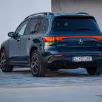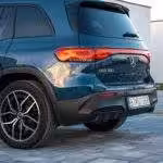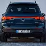 Zadné partie viac-menej kopírujú charakterovú linku prepojených svetiel, to sú zároveň signifikantné prvky odlišujúce GLB od EQB. Trieda EQB je rozmerovo veľmi podobná Škode Enyaq, ten však neponúka sedem miest. Kým Enyaq meria 4 649 mm, EQB dosahuje dĺžku 4 684 mm. V prípade šírky je to naopak a EQB so svojimi 1834 mm prehráva v prospech Škodovky so šírkou 1 879 mm. Rázvor nám však dilemu vyriešil a EQB s rozmerom 2 829 milimetrov jasne poráža Enyaq s dĺžkou rázvoru 2 765 milimetrov.