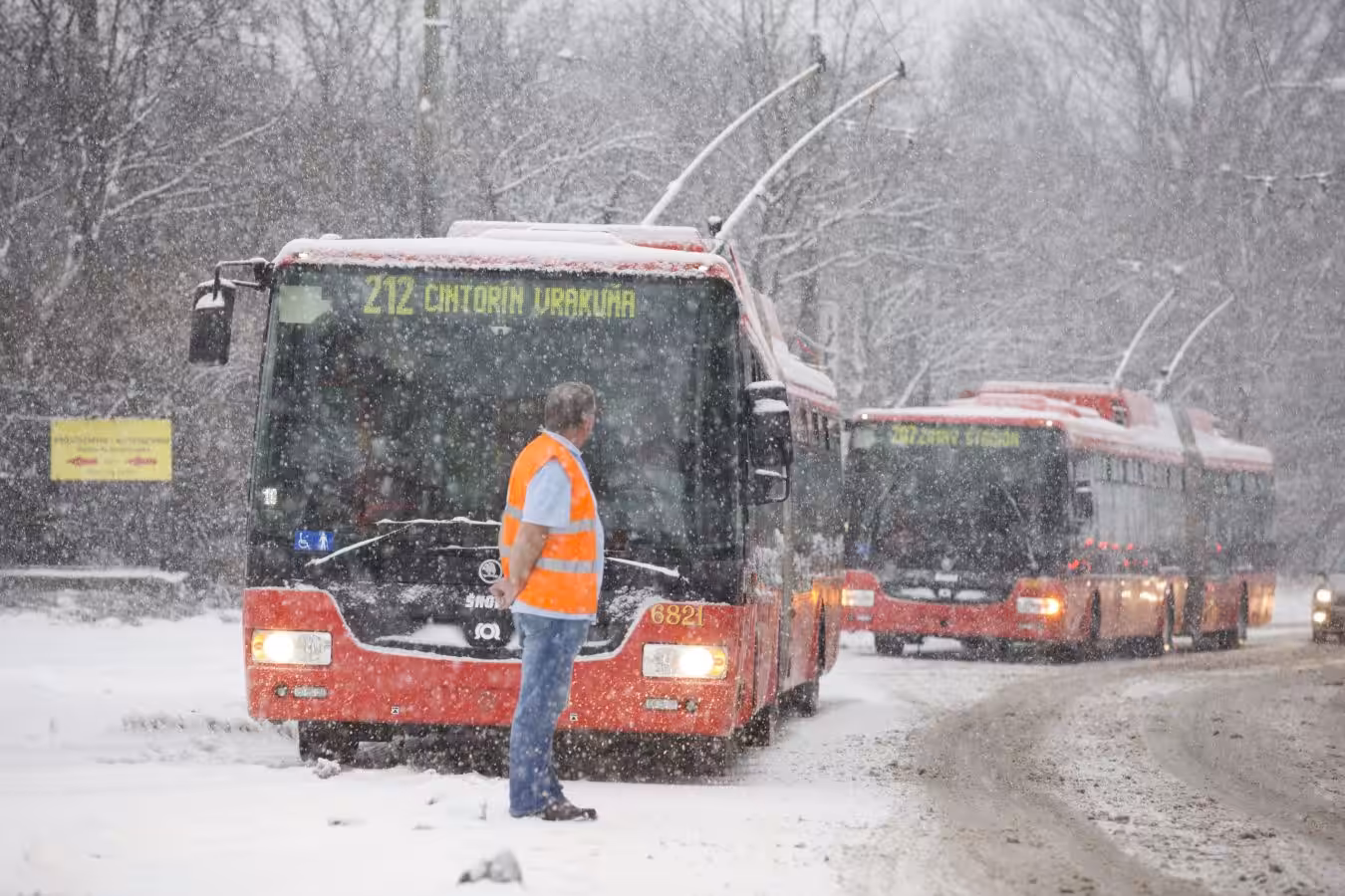 Od deviatej hodiny rannej nepremáva zopár trolejbusových liniek či už na Palisády alebo k nemocnici Kramáre. Stále husto sneží a MHD mešká v priemere od 10 do 20 minút. Dispečing DPB vyhlásil zásah na vyčistenie obratisk pre MHD, jednotlivých tratí, či zastávok.