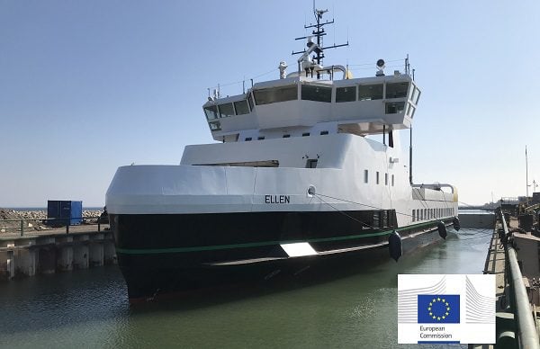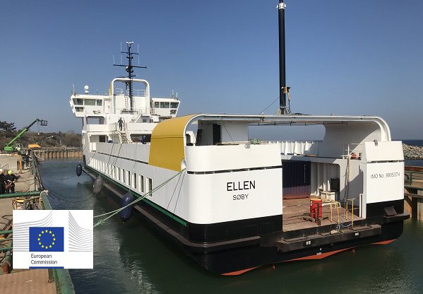 Ešte v roku 2017 začala výstavba takéhoto elektrického trajektu v Dánsku, kde mal nahradiť pôvodný naftový trajekt premávajúci na linke Søby-Fynshav. Naftový trajekt MF Skjoldnæs nešiel do zaslúženého dôchodku ale svoju prácu vykonáva ďalej, len na inej trase. Trup pre nový elektrický trajekt bol dodaný z Poľska a o pohon sa postarala fínska spoločnosť Viseda. 4,3 MWh lítium-iónovú batériu dodala švajčiarska firma Leclanché. Tento elektrický trajekt nesúci názov Ellen dokáže preplávať asi 41 kilometrov a maximálnu rýchlosť dosahuje 15,5 uzlov, čo je v prepočte približne 29 km/h. Celkové rozmery trajektu Ellen sú 59,5 metrov na dĺžku, 12,8 na šírku a ponor sa rovná 2,5 metrom. Tieto rozmery umožňujú v útrobách prepraviť približne 30 vozidiel a až 200 pasažierov. Vďaka týmto parametrom sa jedná o najväčší trajekt s elektrickým pohonom na svete.