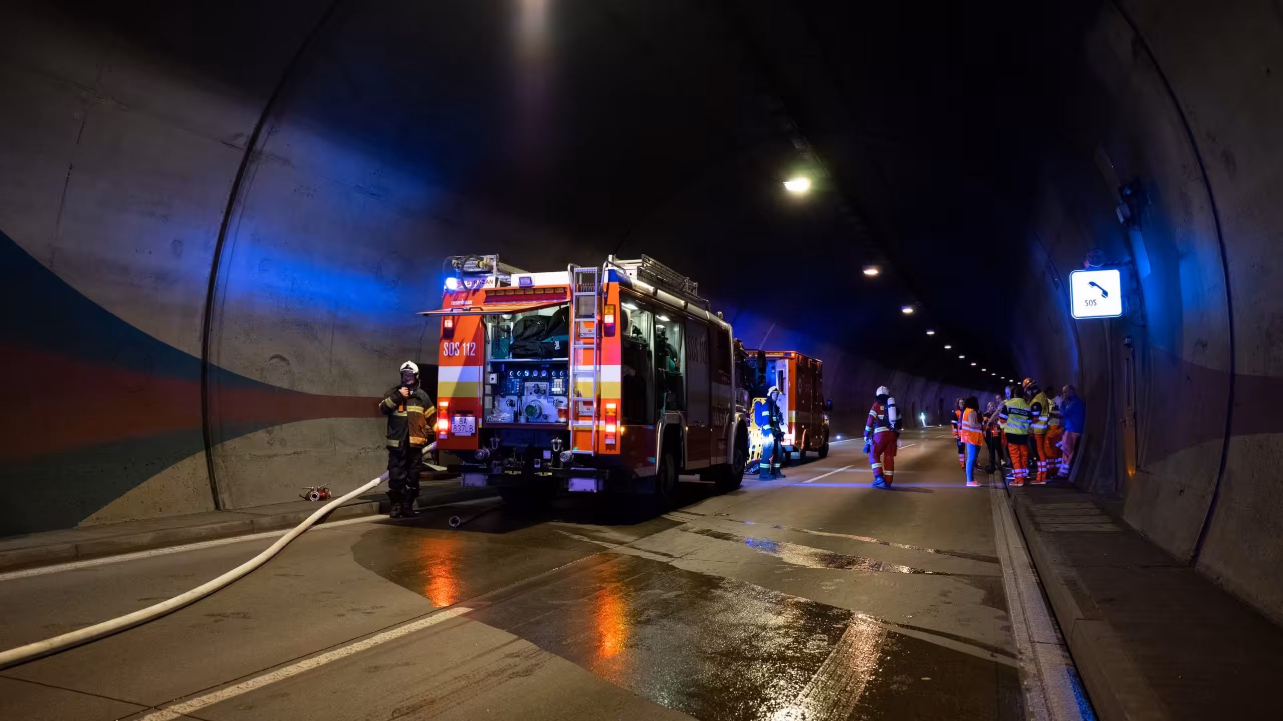 Pri hľadaní únikového východu sa orientujeme podľa značenia na stenách, ktoré vám vždy napovie, ktorým smerom je najbližší únikový východ. V rovnakom momente už na miesto prichádzajú záchranné zložky. Hasiči sú samozrejme vybavení dýchacími prístrojmi a začínajú s prieskumom tunela. Záchranári v druhej tunelovej rúre, ktorá je bezpečná, začínajú s vytváraním hniezda záchrany, teda prvej kontaktnej zóny, kde dokážu ošetrovať zranených bez ďalších bezpečnostných hrozieb.
