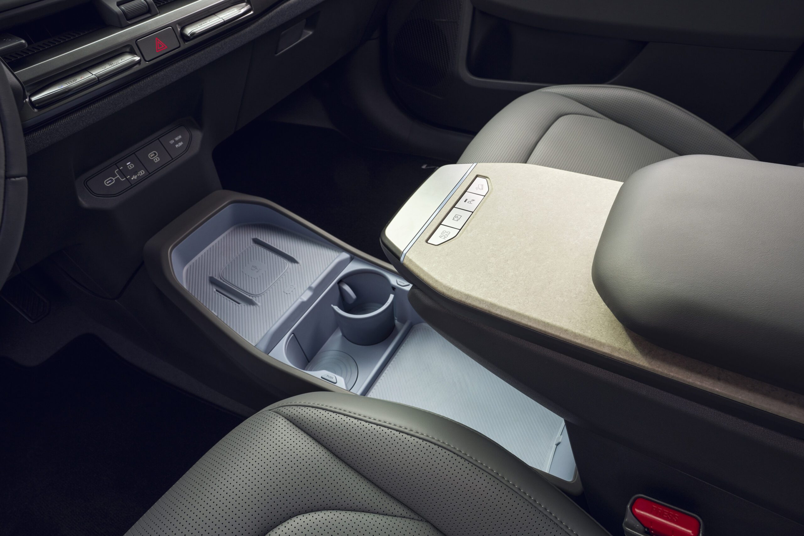 Interiér sa nesie v znamení recyklovaných materiálov napríklad z použitých rybárskych sietí, moderných ovládačov a veľkých displejov. Takmer 30-palcový kombinovaný širokouhlý displej – vrátane 12,3-palcového panela, päťpalcového panelu klimatizácie (áno klimatizácia má vlastný displej) a ďalšieho 12,3-palcového AVN displeja – zahŕňa bezproblémové dotykové ovládanie funkcie klimatizácie a poskytuje jasnú grafiku a intuitívne informácie. Obrazovka sa rozprestiera aj do stredu palubnej dosky a umožňuje spolujazdcovi na prednom sedadle prístup k funkciám zábavy a navigácie.