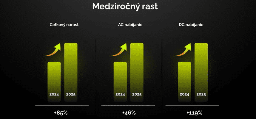 Rok 2025 priniesol podľa údajov spoločnosti výrazný rast využívania siete. Objem dodanej energie medziročne vzrástol o 85 percent. AC nabíjanie stúplo o 46 percent, zatiaľ čo DC nabíjanie zaznamenalo nárast o 119 percent. Dynamickejší rast rýchleho nabíjania naznačuje meniaci sa profil využívania elektromobilov. Kým pomalé AC nabíjanie ostáva typické pre rezidenčné zóny, čoraz väčší podiel energie sa dobíja počas medzimestských presunov. Expanzia ultra-rýchlej infraštruktúry tak reaguje na reálnu zmenu správania vodičov, nie iba na rast počtu registrácií elektromobilov.