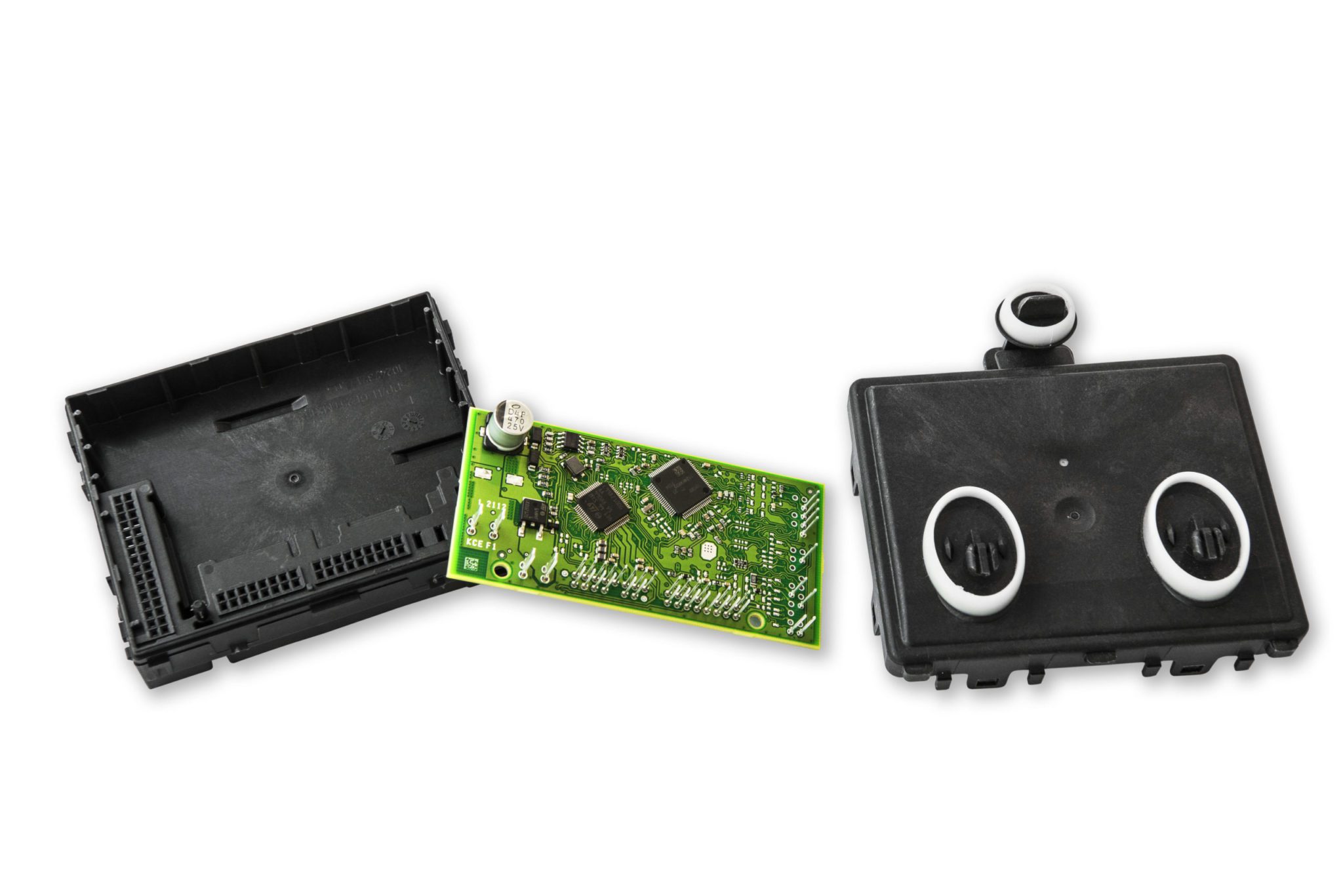 V tomto prípade sa pozeráme na dosku s tlačenými plošnými spojmi, rezistormi a čipmi. Tento čip môžeme nájsť v riadiacej jednotke dverí. Zásadnými čipmi sú aj tie, ktoré sa starajú o emisie motora alebo v prípade elektromobilu o riadenie odberu elektriny z batérie. Bez čipov by sa vlastne dnešné moderné vozidlo v podstate nerozbehlo,“ vysvetľuje Jancák.