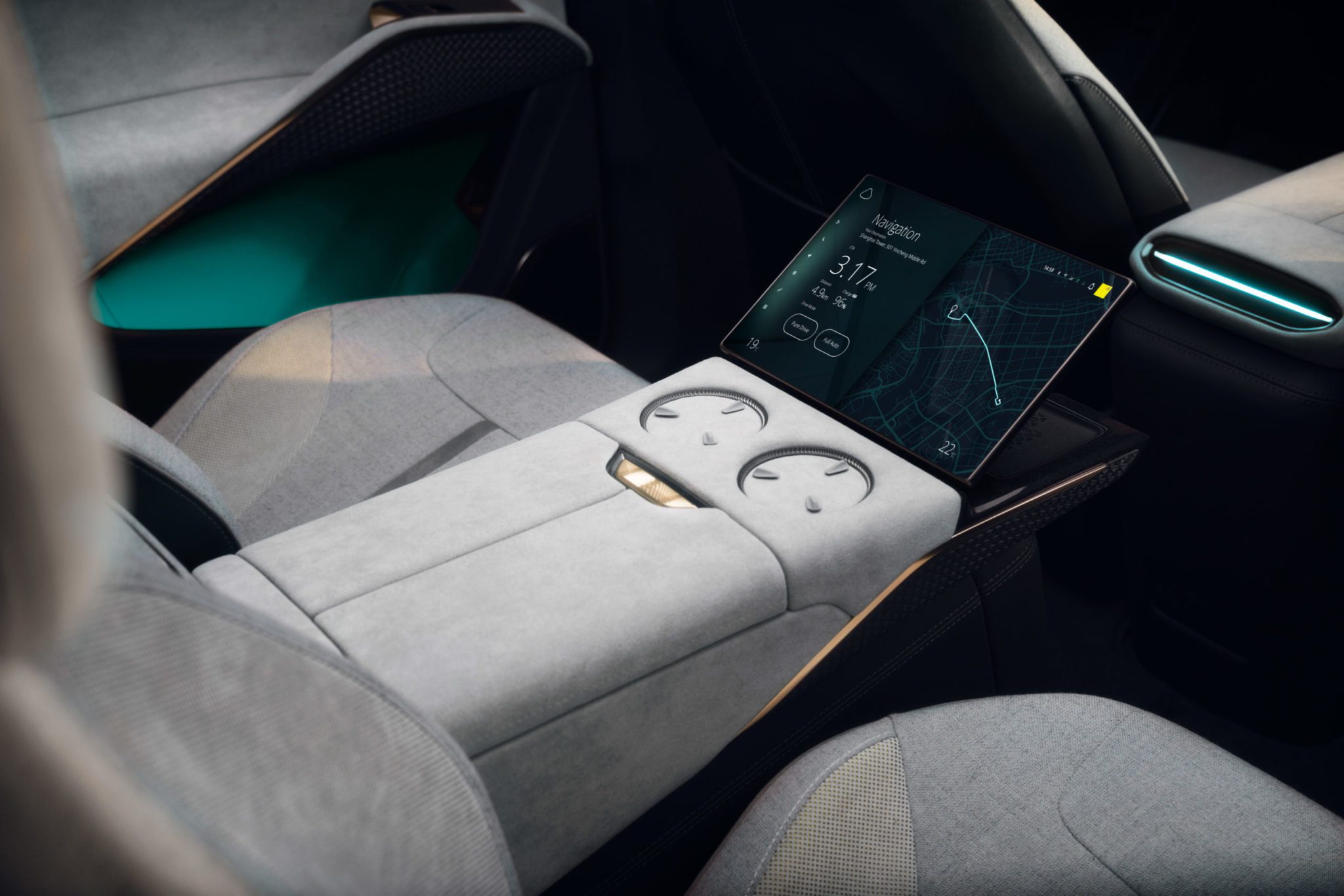 Pod prístrojovou doskou prechádza cez celú šírku kabíny svetlo, umiestnené v rebrovanom kanáliku, ktorý sa na oboch koncoch rozširuje a vytvára vetracie otvory. Aj keď sa zdá, že sa vznáša, svetlo je viac než len dekoratívne a tvorí súčasť rozhrania HMI. Mení farbu, aby komunikovalo s cestujúcimi, napríklad pri prijatí telefónneho hovoru, pri zmene teploty v kabíne alebo pri zobrazení stavu nabitia batérie vozidla. Tradičný panel prístrojového panelu pred vodičom sa zmenšil na tenký prúžok vysoký menej ako 30 mm. Vodičovi komunikuje kľúčové informácie o vozidle a ceste. To isté sa opakuje aj na strane spolujazdca. Tu sa dajú zobraziť rôzne informácie, napríklad výber hudby alebo blízke body záujmu. Medzi nimi je 15,1-palcová OLED dotyková obrazovka poskytujúca prístup k pokročilému informačno-zábavnému systému vozidla. Keď to nie je potrebné, automaticky sa zloží. Informácie možno vodičovi zobraziť aj prostredníctvom head-up displeja s technológiou rozšírenej reality, ktorá bude štandardnou výbavou auta.