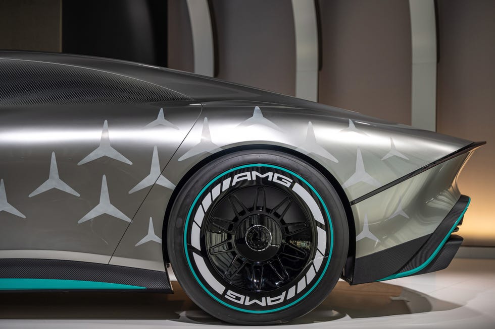 Pre čo najlepšiu aerodynamiku a samozrejme aj čo najlepší koeficient vzduchu je Mercedes-AMG Vision vybavený digitálnymi spätnými zrkadlami a 22“ palcovými kolesami. Lišty predného nárazníka prebrali farebnú schému tímu Mercedes-AMG Petronas F1 Team.