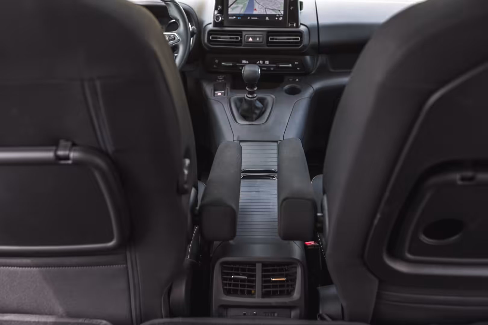 Komfort poskytne dostatočne priestranný interiér kde je koncernová spolupráca a príbuznosť s modelmi Rifter a Berlingo najvýraznejšia. Palubnej doske dominuje obrovský osem palcový displej infotaimentu. Samozrejmosťou je podpora rozhrania CarPlay a Android Auto. Grafické vypracovanie je takmer totožné zo všetkými aktuálnymi modelmi koncernu PSA. Volič klimatizácie je však po vzore Peugeotu Traveller vyvedený klasicky manuálnymi tlačidlami, čo oceňujeme. Kruhový volič automatickej prevodovky taktiež poznáme z Travellera. Nechýba ani zásuvka na 230 V vpredu, či bezdrôtová nabíjačka na telefón.