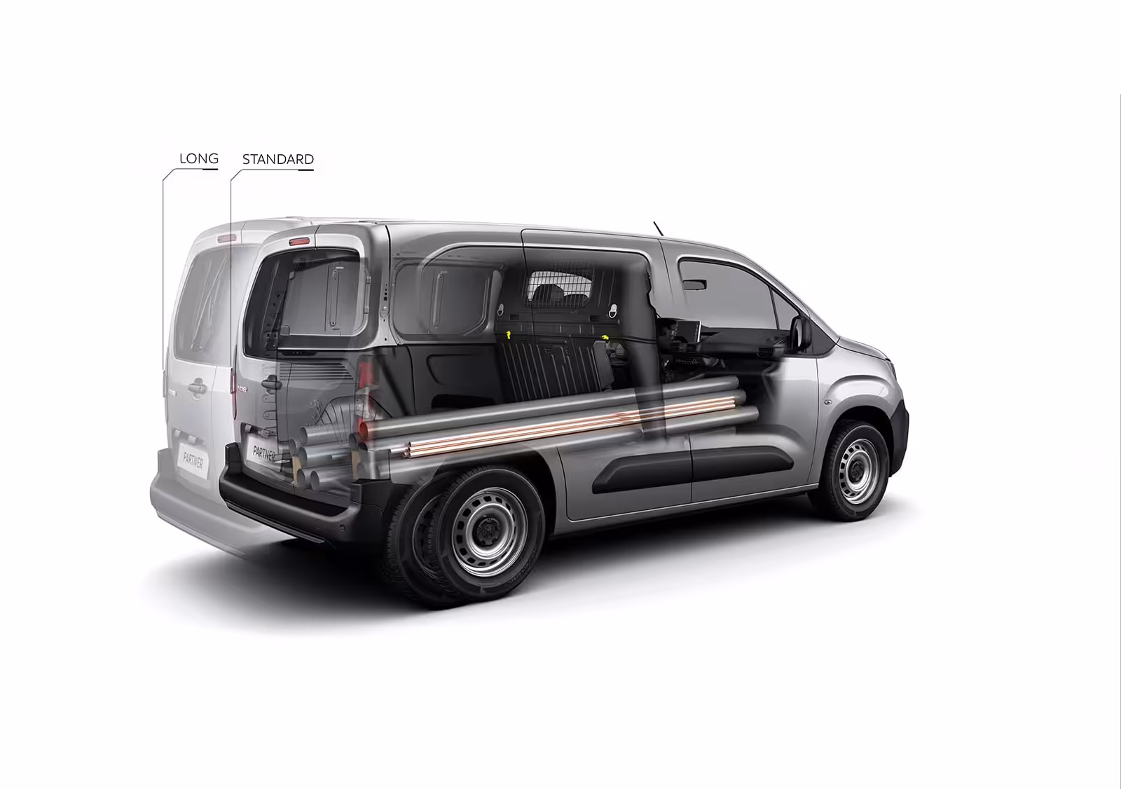 Peugeot Partner bude dostupný v mnohých verziách. Krátka verzia dosahuje dĺžku 4,40 m a rázvor 2 785 mm, užitočné zaťaženie do 1 000 kg a objem nákladového priestoru 3,3 až 3,8 m3, do ktorého možnonaložiť objekty s dĺžkou až do 3 090 mm. Pre tých, ktorí potrebujú prevážať ešte dlhšie predmety, je k dispozícii verzia s asymetrickými zadnými dvojkrídlovými dverami s praktickou výklopnou zadnou časťou strechy. Výklopná strecha umožňuje prevoz predmetov s hmotnosťou do 100 kg uložených naprieč bez toho, aby sa museli otvárať zadné dvere. Prístup zlepšujú aj na požiadanie dodávané posuvné bočné dvere.