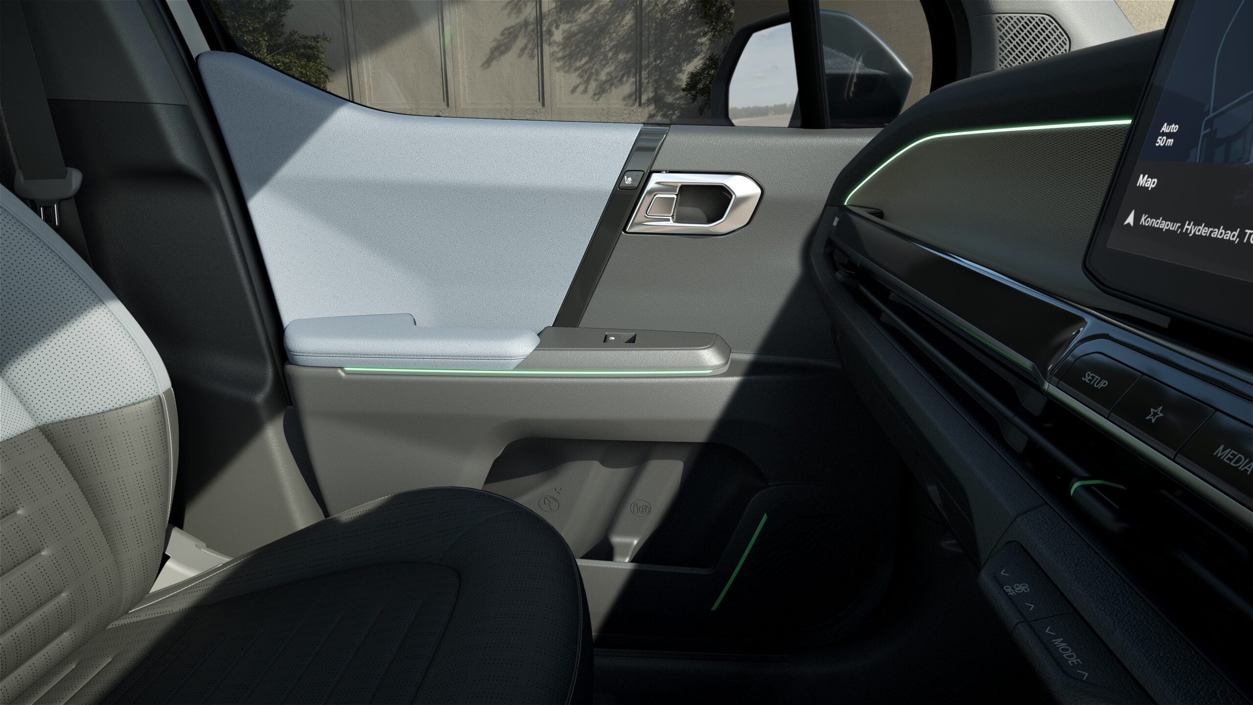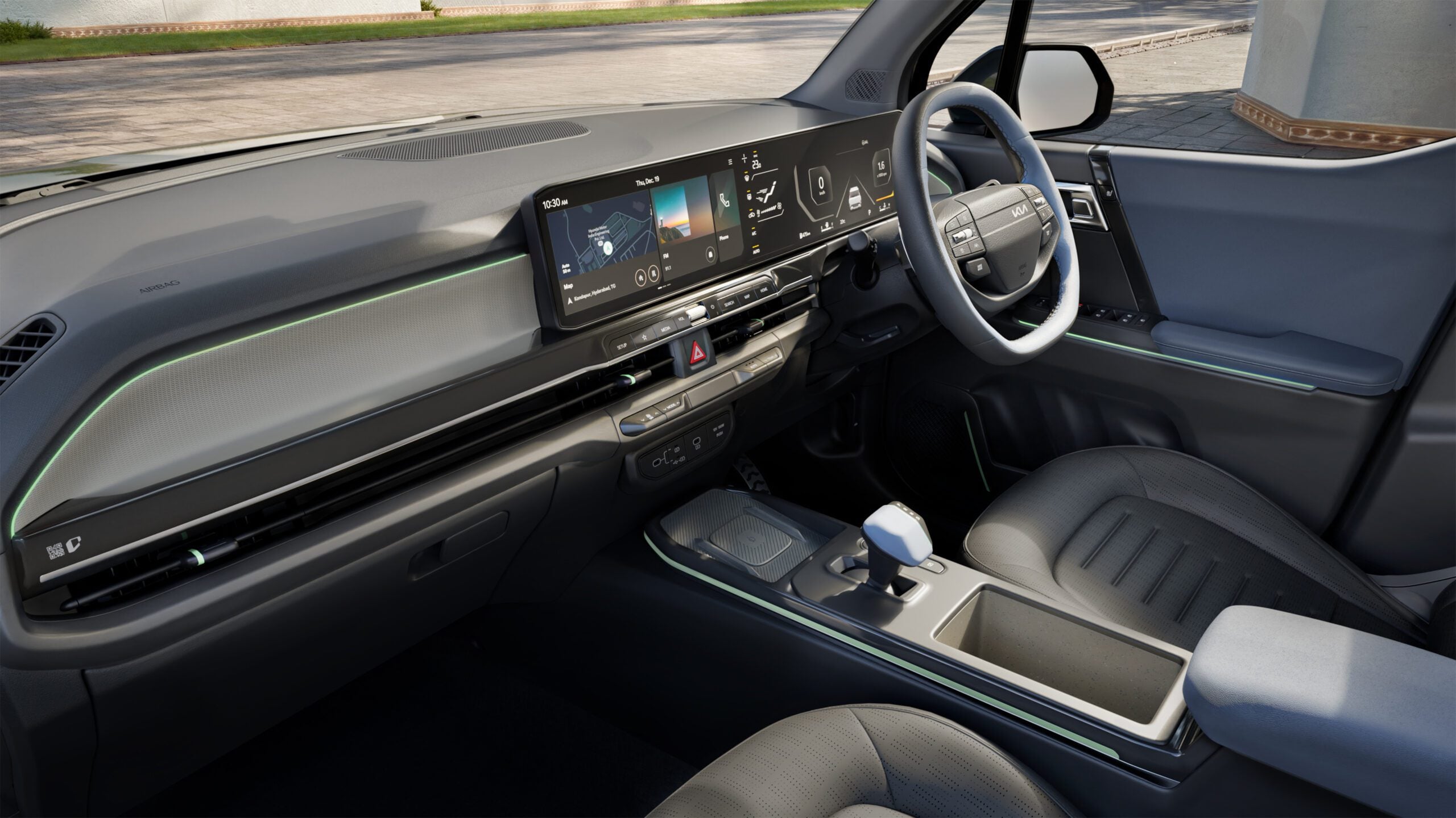 Kabína modelu Kia Syros poskytuje priestor adekvátny rázvoru s dĺžkou 2 550 mm. Predné a zadné ventilované sedadlá v tomto segmente len tak nenájdete. Kabína je ďalej obohatená o 30-palcový panoramatický displej Trinity – Connected Car Navigation Cockpit, dvojité panoramatické strešné okno, zliatinové pedále a 64-farebné ambientné osvetlenie alebo v štyroch smeroch elektricky nastaviteľné sedadlo vodiča.