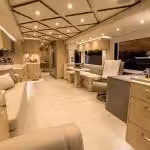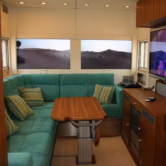 Po vojdení do vozidla nikoho nesklame jeho vybavenosť. Pri používaní sa využívajú kvalitné a špičkové materiály a technológie. Nechýba LED osvetlenie, multimediálny systém alebo aj umývačka riadov v plne zariadenej kuchyni. V zimnom období nesmie chýbať ani podlahové kúrenie. V zadnej časti sa nachádza menšia garáž pre osobné auto, ktorá je vybudovaná pod spálňou.