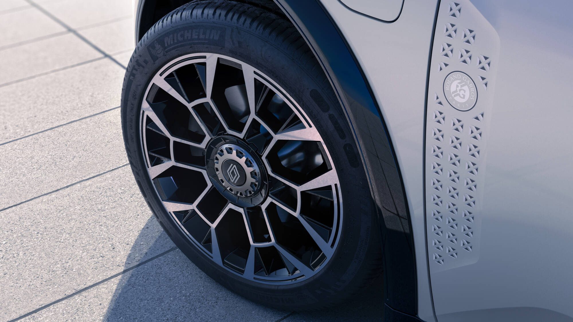 Na palubnej doske sa nachádza vertikálny priečny pás v anódovanej metalickej farbe, ktorý zahŕňa podsvietenú časť zobrazujúcu názov „Roland Garros Paris“. Koncovka páky je inšpirovaná gripom tenisových rakiet s logom Roland Garros na konci. Stredová konzola obsahuje indukčnú nabíjaciu podložku vo farbe antuky. Aj brúsené hliníkové prahové lišty na dverách nesú názov „Roland Garros Paris“ a grafiku kríža svätého Andreja.