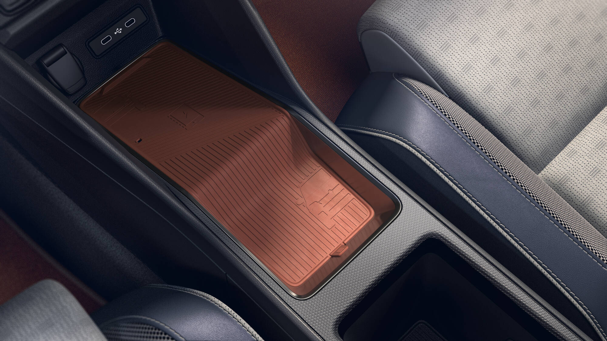 Vo vnútri vozidla je špeciálna svetlosivá poťahová látka, ktorá spája technické oblečenie s poťahovým materiálom, pričom má hustú, no jemnú grafickú tkaninu. Tento recyklovaný textil obsahuje niekoľko otvorených tkanín, vrátane H-tvaru opierky. Celkový dojem je umocnený bočnými oporami a opierkou rúk, ktoré sú potiahnuté modrou jemnou textíliou. Opierky predných sedadiel získali tepelne vyrazené logo Roland-Garros. Panely dverí a dolná časť palubnej dosky obsahujú vložky z poťahového materiálu sedadiel, spolu s jemnou modrou textíliou a malou francúzskou vlajkou.
