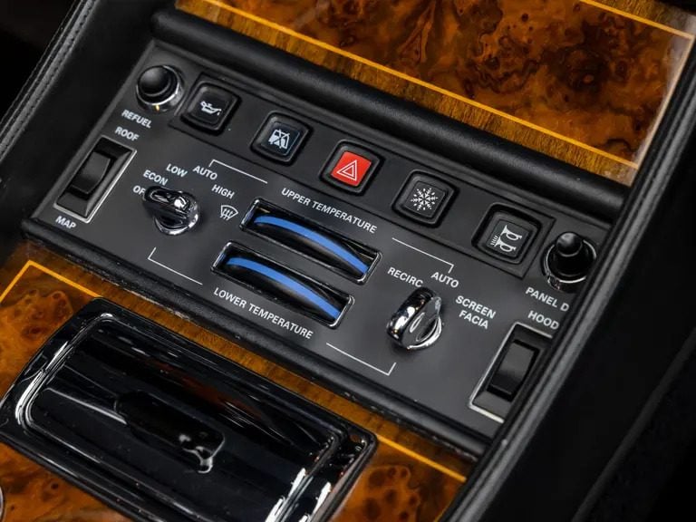 Interiér pôsobí premyslene a komfortne už na prvý pohľad. Kabína ponúka kvalitné kožené čalúnenie, ktoré vytvára príjemnú atmosféru a zároveň podčiarkuje luxusný charakter vozidla. Predné sedadlá zabezpečujú pohodlie vďaka elektrickému nastaveniu a vyhrievaniu, čo ocení najmä vodič pri dlhších jazdách. Plynule nadväzuje aj palubná doska so stredovou konzolou a dverovými výplňami, ktoré výrobca doplnil dekoratívnymi drevenými obkladmi. Celkový dojem dotvára bohatá výbava nechýba automatická klimatizácia, tempomat ani kvalitný audio systém, ktorý kombinuje rádio s kazetovým prehrávačom. Vďaka prehľadnému usporiadaniu ovládacích prvkov pôsobí interiér funkčne a vodič sa v ňom rýchlo zorientuje. Prístrojový panel obsahuje rýchlomer s maximálnou hodnotou 150 mph (241 km/h) , otáčkomer s červeným poľom pri 4 500 ot./min a ukazovatele tlaku oleja, hladiny paliva a teploty chladiacej kvapaliny.