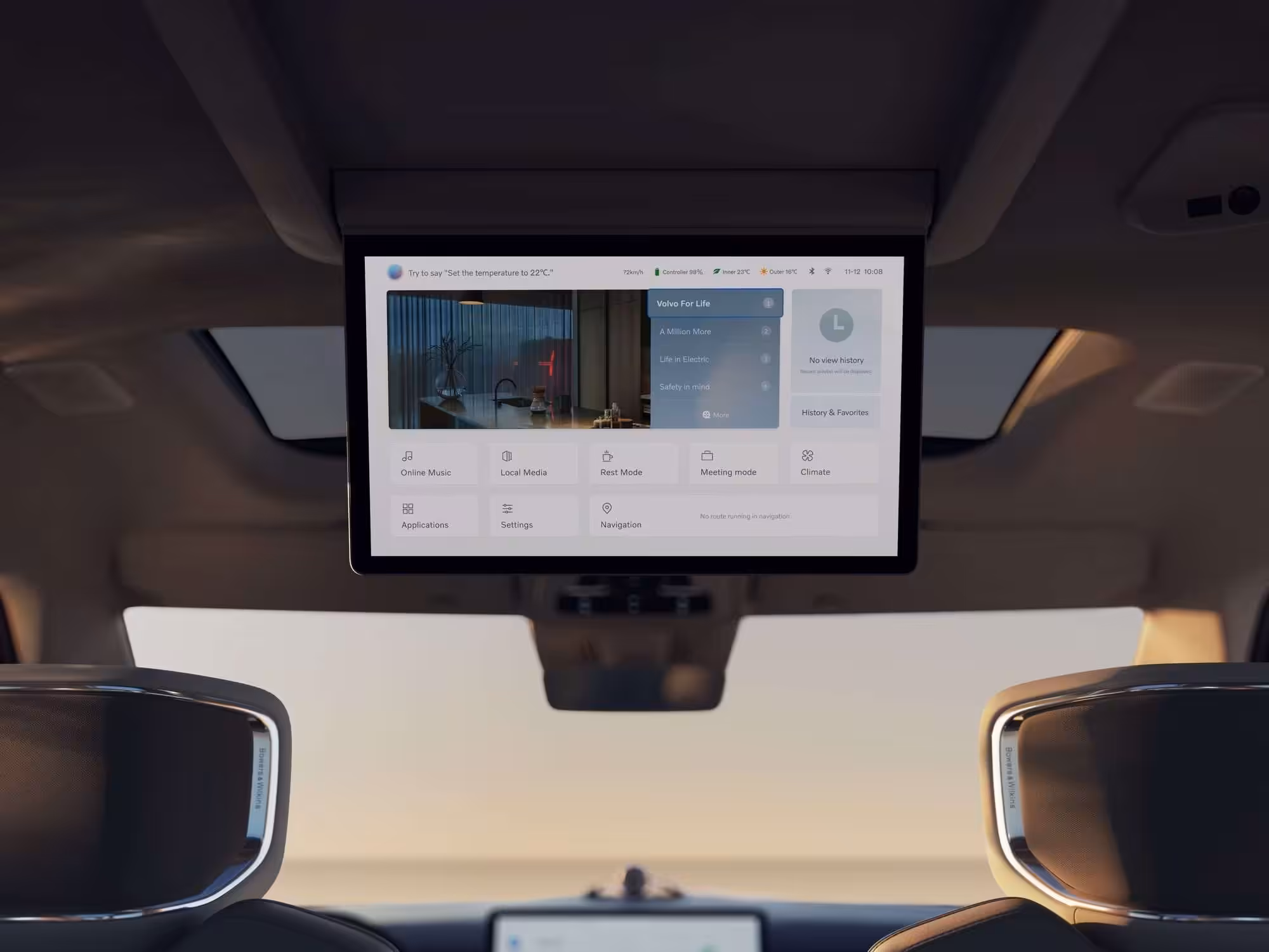 Vo výbave sa nachádzal aj audiosystém Bowers & Wilkins so súborom 21 reproduktorov. Celé prostredie interiéru bolo inšpirované Škandináviou. Na radiacej páke sa nachádzal kryštál Orrefors, dekoračné panely pochádzali z brezového dreva a vzory čalúnenia boli inšpirované škandinávskou prírodou. Šesť sedadiel bolo umiestnených v troch radoch za sebou. Každé z nich poskytovalo luxusný priestor s masážou, ventiláciou aj vyhrievaním.