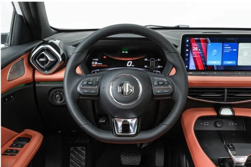 Interiér MG5 pridal novú farebnú kombináciu – oranžovo/čiernu, zatiaľ čo rozloženie zostáva oproti predchádzajúcemu modelu do značnej miery nezmenené, vrátane trojramenného volantu s plochou spodnou časťou, 12,3-palcovej prístrojovej dosky a 12,3-palcovej (alebo 10,25-palcovej pre základnú výbavu) plávajúcej centrálnej ovládacej obrazovky. Fyzické tlačidlá pod centrálnou ovládacou obrazovkou zostali zachované. Sedadlá sú čalúnené kombináciou kože a látky. Okrem toho bol zvukový systém špičkovej výbavy vylepšený na osem reproduktorov a novo pridané 256-farebné ambientné svetlá môžu automaticky meniť farbu a upravovať jas na základe hudobných rytmov a vonkajších svetelných podmienok. Nechýbajú aktualizácie vzduchom, hlasový asistent s umelou inteligenciou a systémy na asistovanú jazdu 2. úrovne.