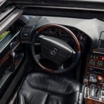W140 sa na ceste správa ako veľká limuzína, no vďaka precízne naladenému podvozku a ťažisku umiestnenému nízko pôsobí vyvážene a iste. Podvozok kombinuje komfort s kontrolou. Nerovnosti filtruje s istotou, typickou pre vozidlá značky z deväťdesiatych rokov, keď sa ešte nešetrilo na materiáloch ani hmotnosti. Tlmiče aj silentbloky pracujú ticho a presne, čím vytvárajú dojem, že vozidlo pláva nad vozovkou. Na diaľnici pôsobí 600 SEL ako železničný expres – pri 160 km/h motor točí len mierne nad 3 000 otáčok a v kabíne panuje takmer úplné ticho.